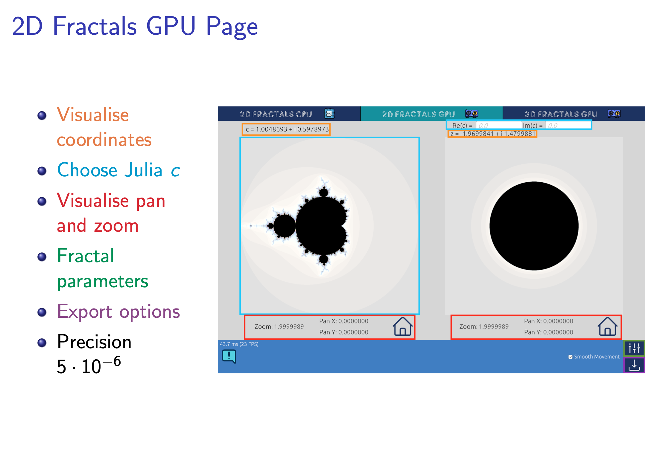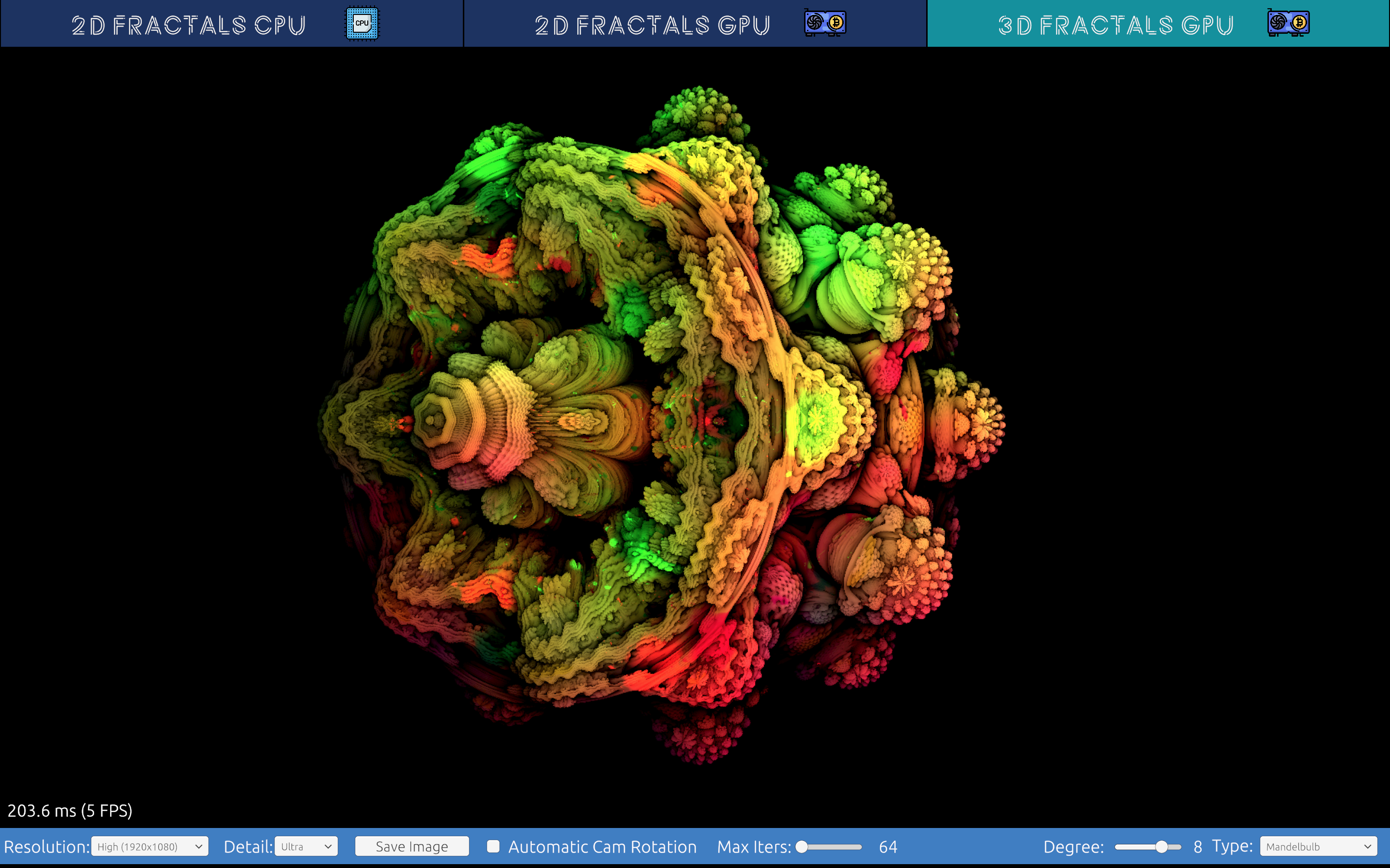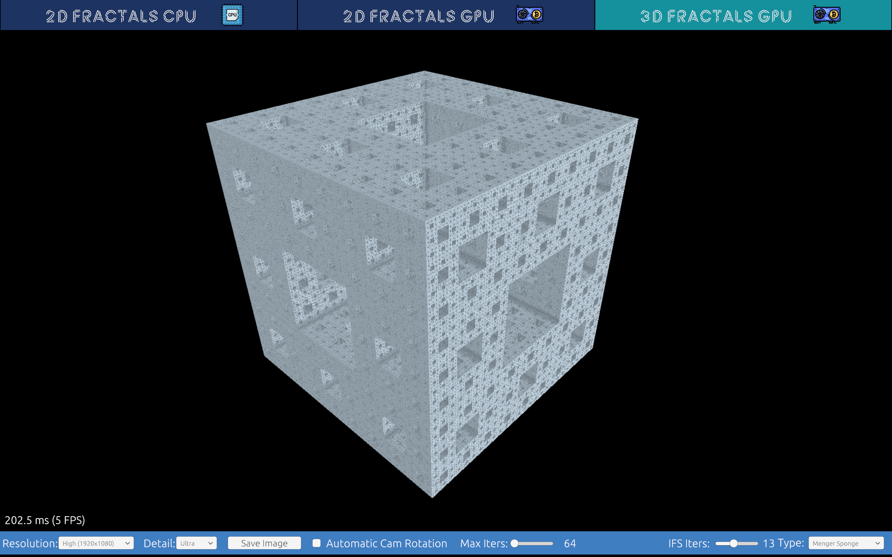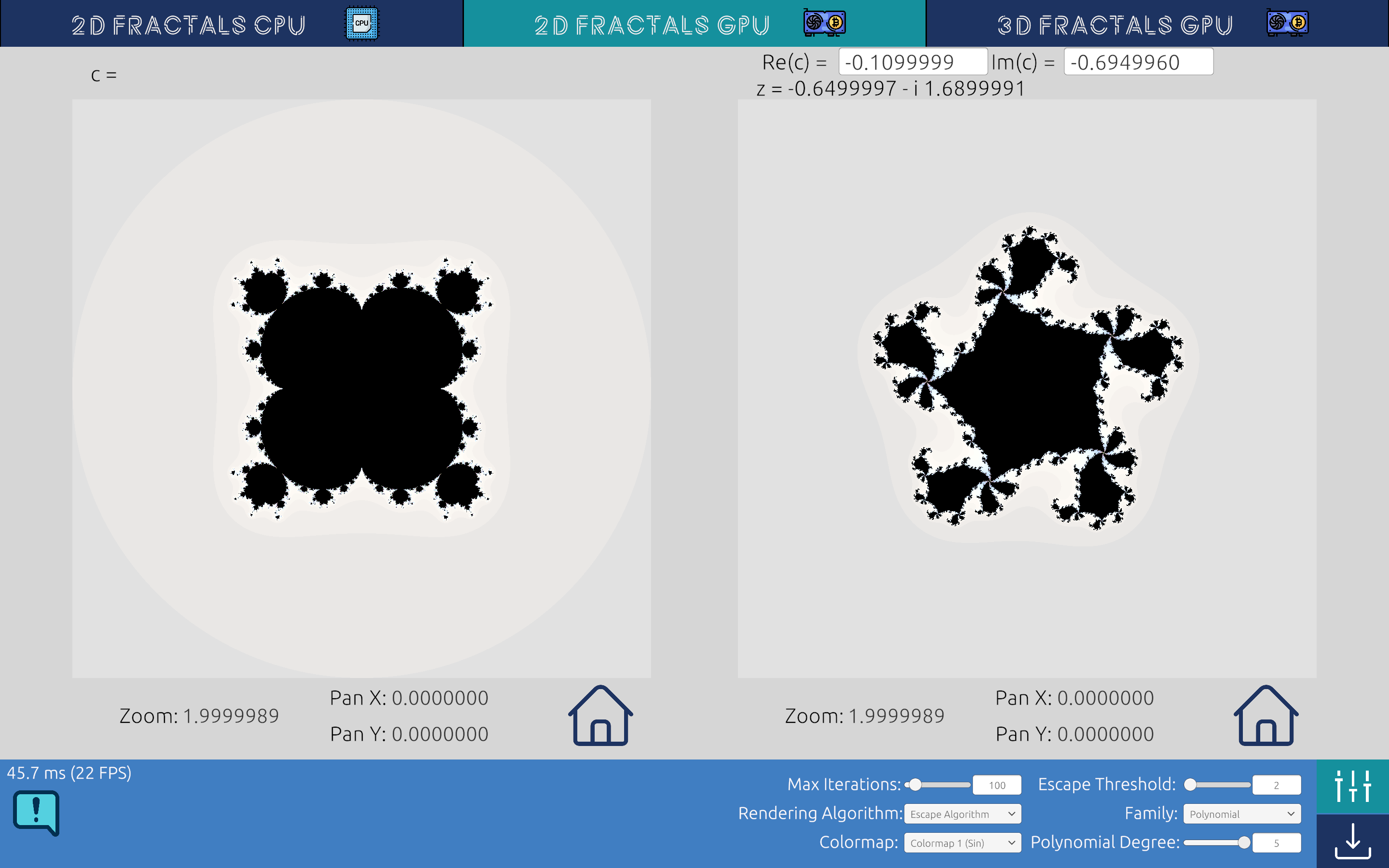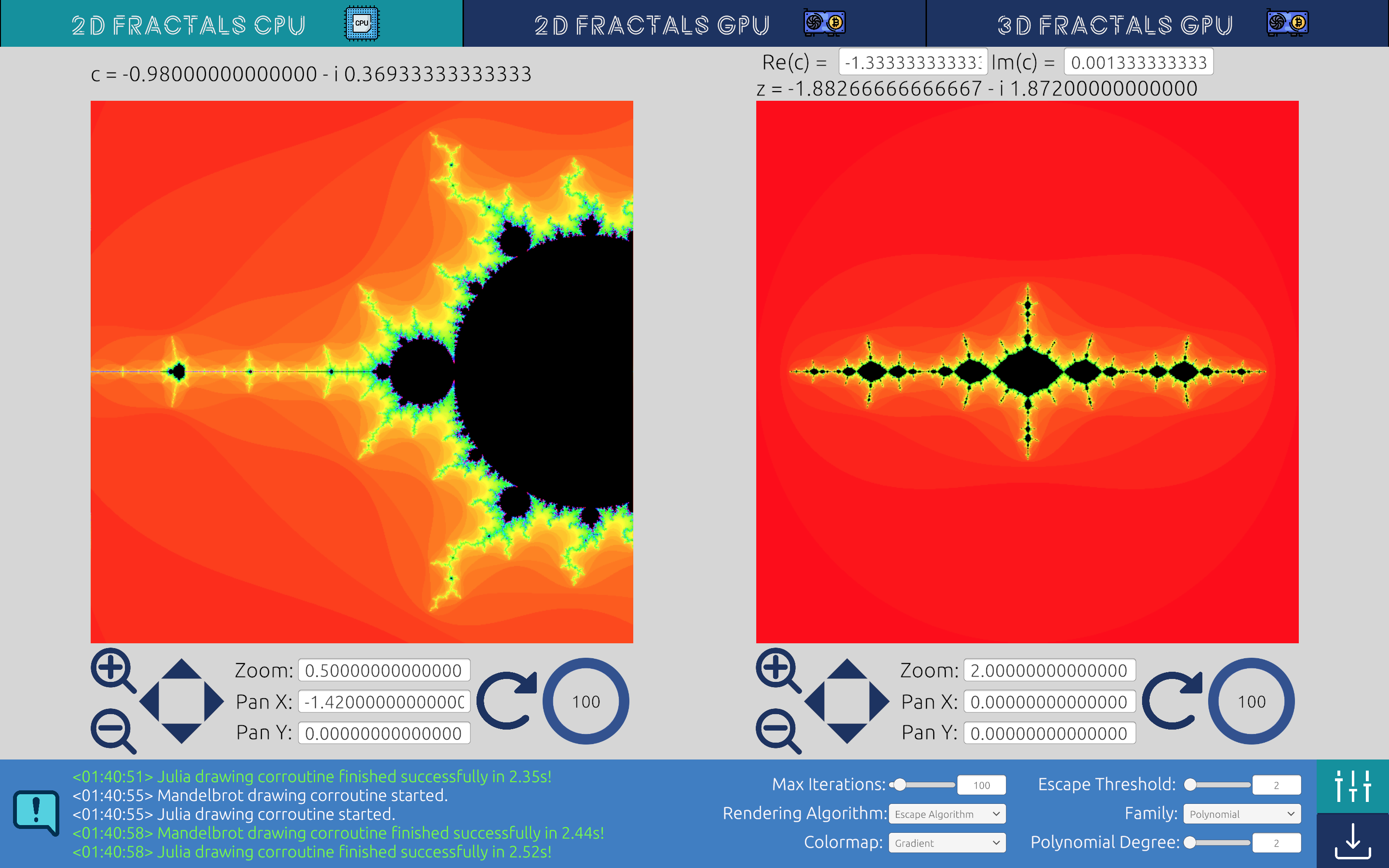 This is an application that allows you to explore the fractals from Mandelbrot (and Multibrot) sets and Julia sets as well as some 3D fractals such as the Mandelbulb or some IFS fractals directly on a website!