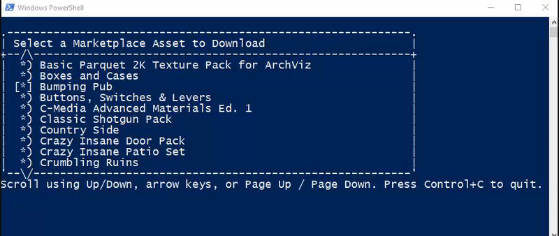 I offer ZERO support. If you have a problem with this, please post an issue but I don't guarantee I'll resolve it. I wrote this tool for myself since I need to grab a bunch of marketplace assets on a Linux machine and was too lazy to copy paste files around.