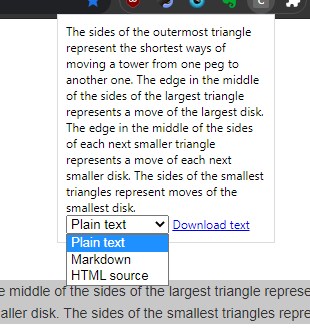 Currently it can save selected elements as plain text, HTML and Markdown.