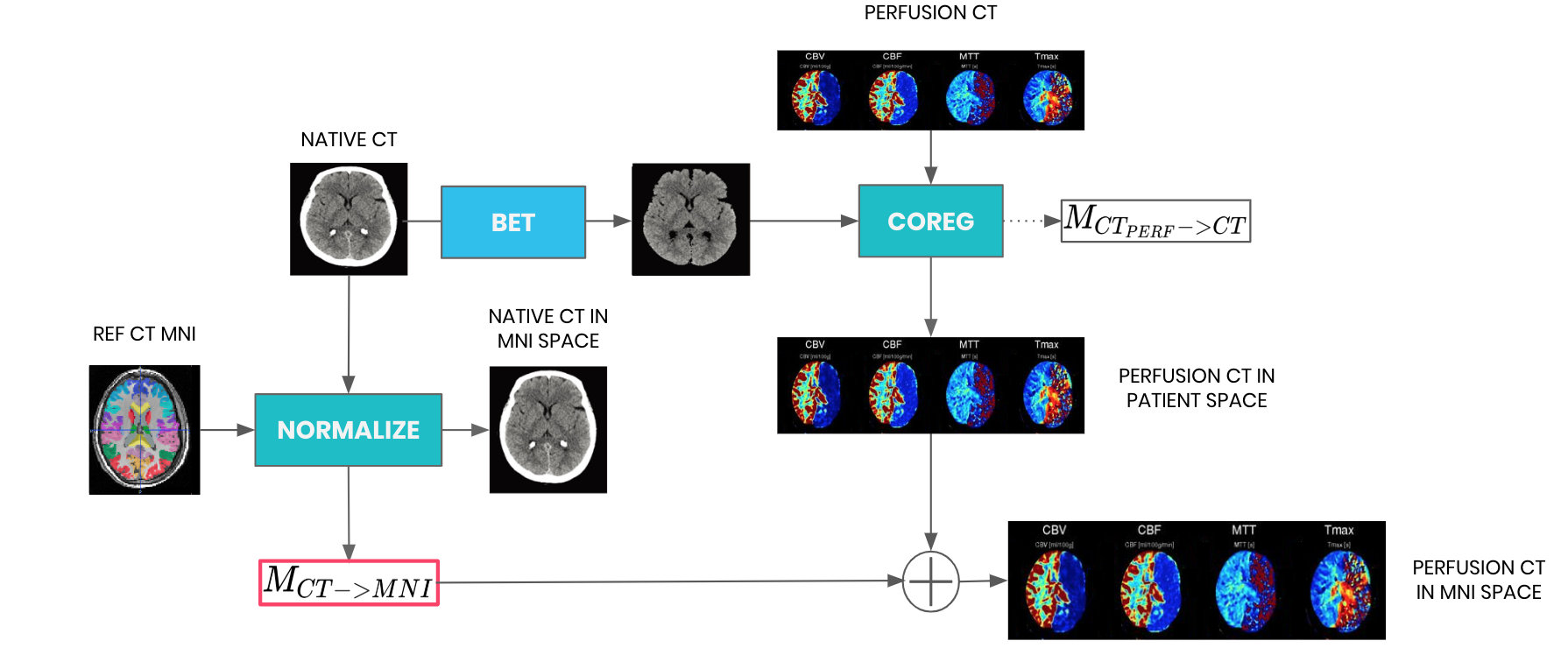 - matlab_tools/perfCT_normalisation_wrapper.m : normalise perfusion CT and native CT to CT_MNI (if this needs to be reprocessed, step 2. also needs to be done again)