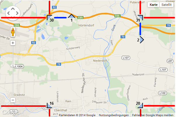 Red lines represent the border offset. The border offset specifies the distance between the arrows and the map's border. This offset can be used to position arrows so that they don't overlap map controls.