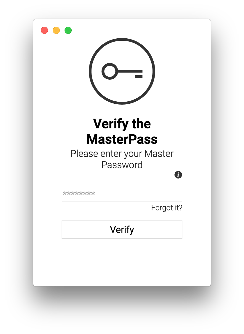You can reset your MasterPass by clicking on the "Forgot it" link in the Verify MasterPass window. This takes you to a new screen where you can enter a new, valid MasterPass. Once you've entered it, click the 'Reset' button and you'll be sent back to the verify screen where you can verify your new MasterPass.