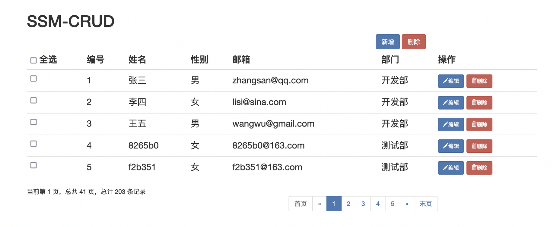 使用 SSM 框架搭建出一套简单的 CRUD 项目示例,主要涉及两张表:员工表和部门表,其中每个员工都对应一个部门。