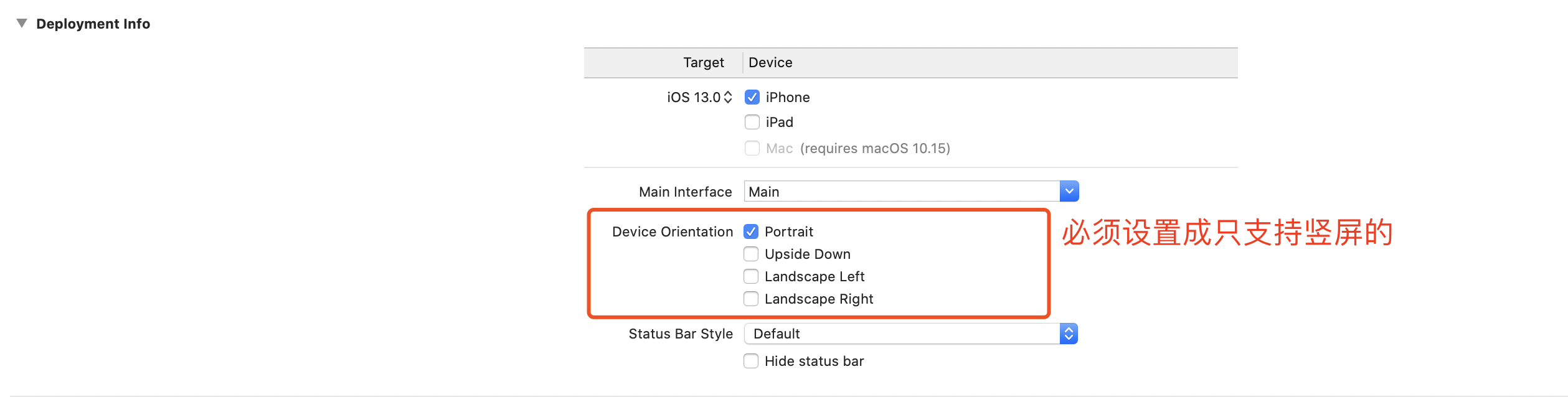 第一:在info.plist文件或者General中设置成只支持竖屏