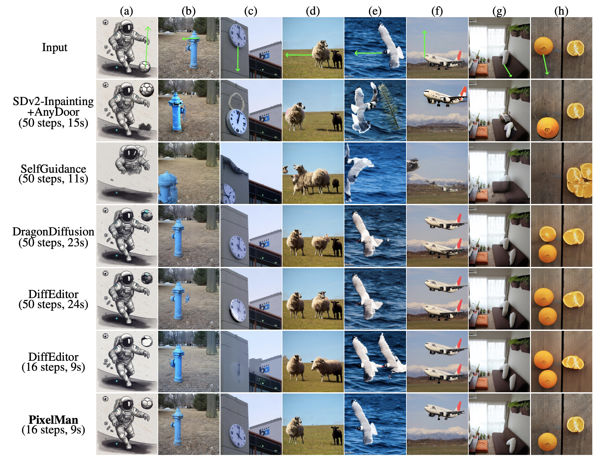 PixelMan maintains image consistency by directly creating a duplicate copy of the source object at target location in the pixel space, and we introduce an efficient sampling approach to iteratively harmonize the manipulated object into the target location and inpaint its original location.