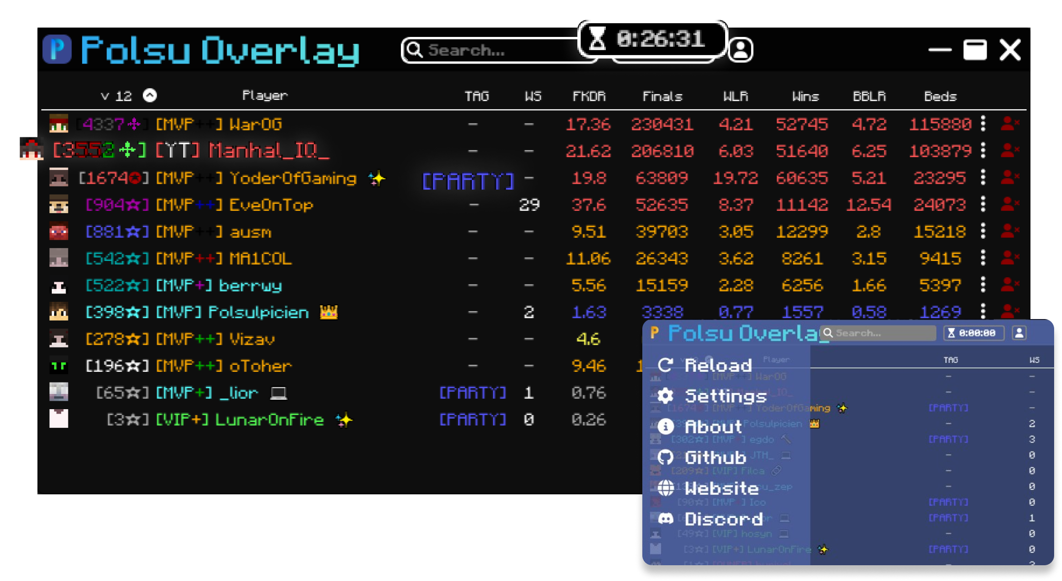 This is the second version of Polsu's Overlay, a powerful Hypixel Bedwars Overlay made in Python.
