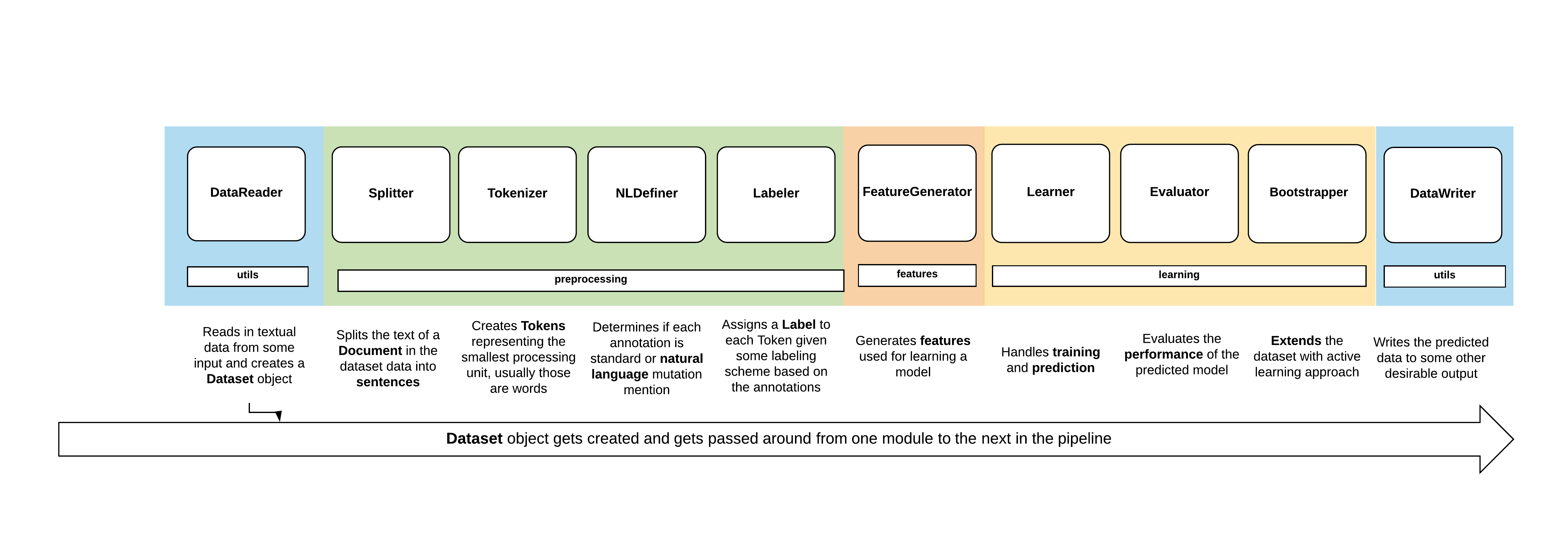 As a result of the original BioNLP focus, some parts of the code are tailored to the biomedical domain. However, current efforts are underway to generalize all parts and this process is almost done. Development is not active and code maintenance is not guaranteed.