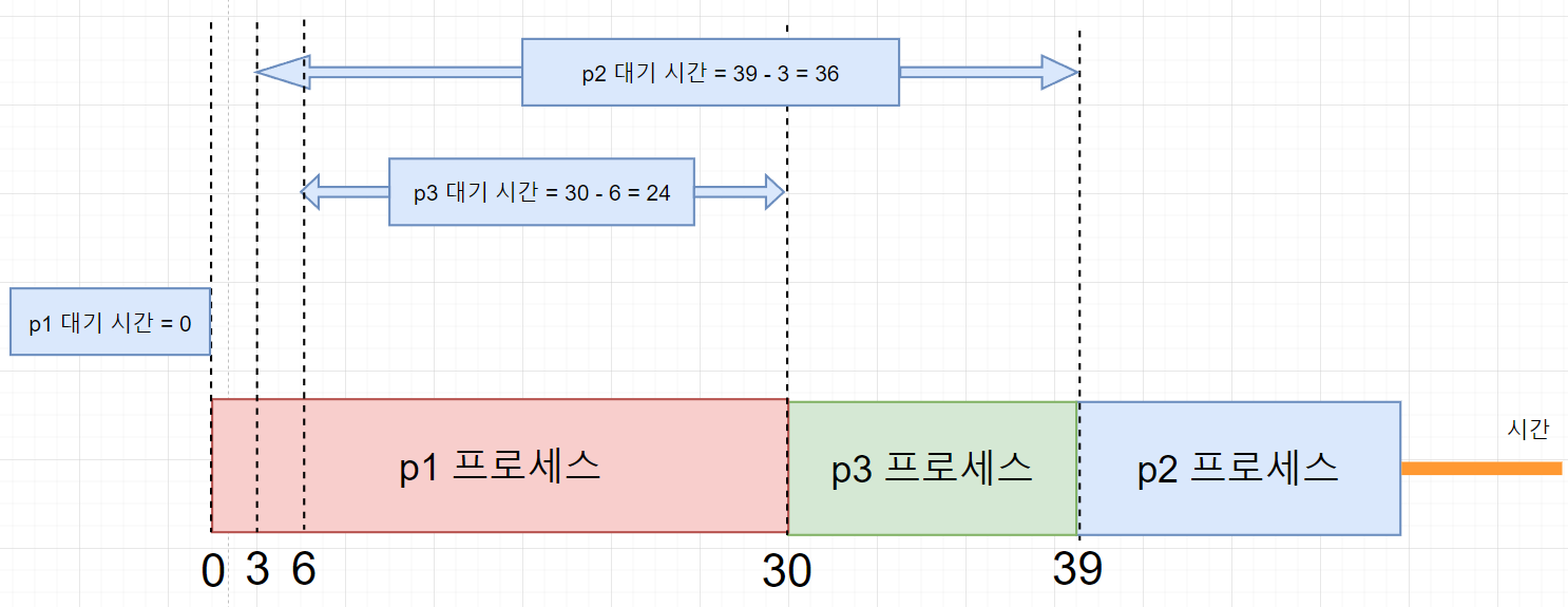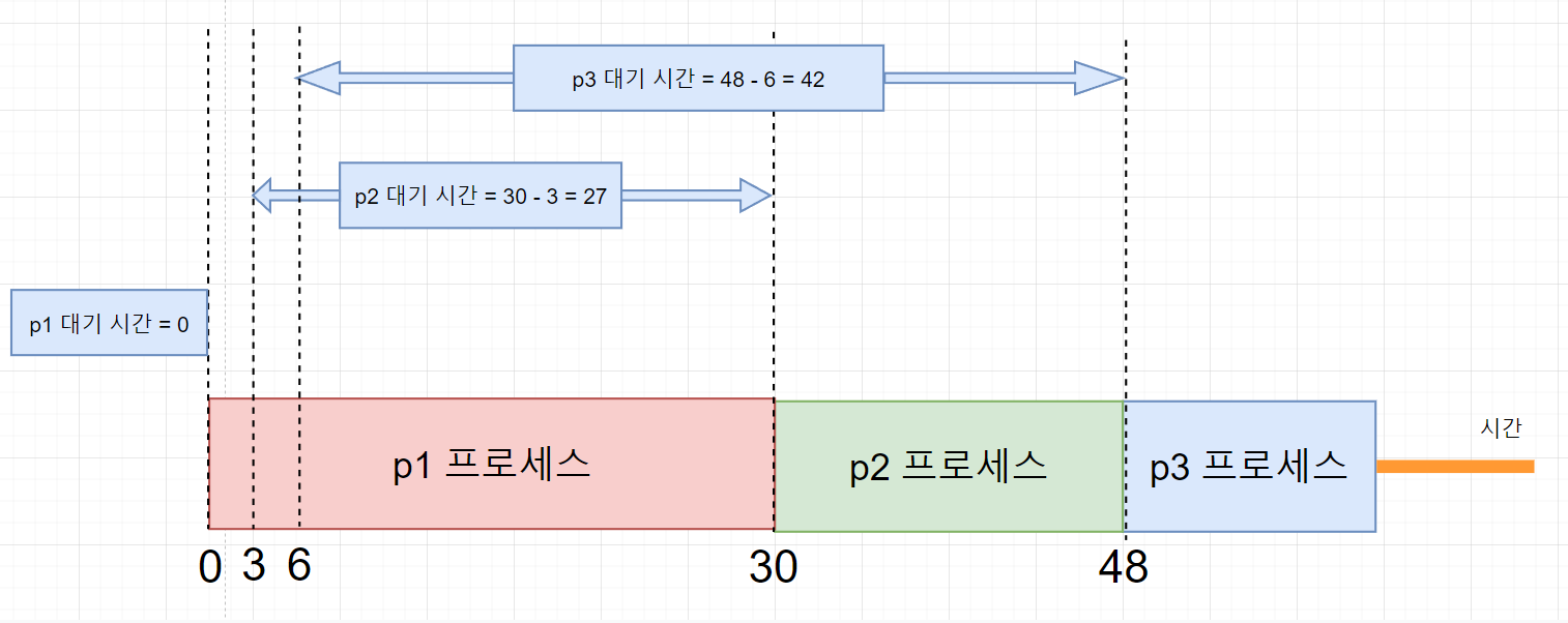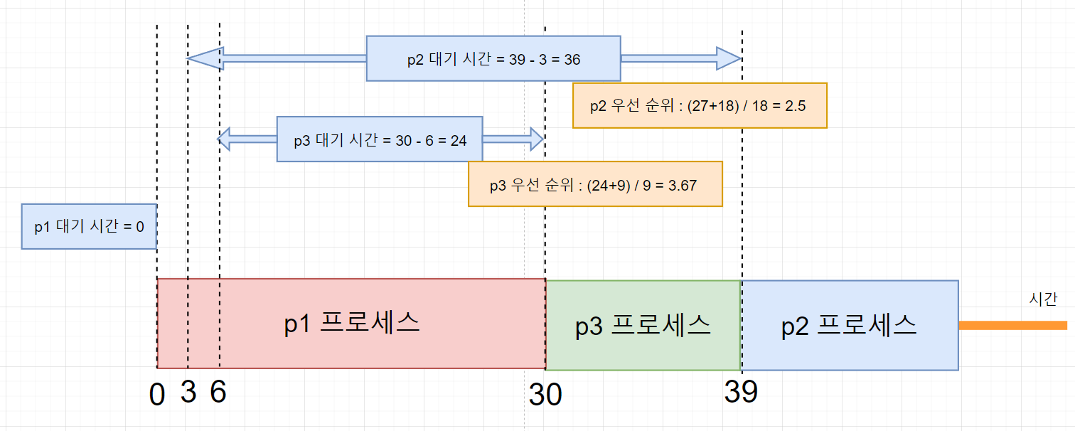 💡 프로세스가 스스로 CPU 소유권을 포기하는 방식이며, 강제로 프로세스를 중지하지 않는다.프로세스 실행시간 도착시간