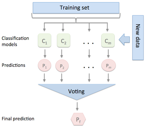 The EnsembleVoteClassifier is a meta-classifier for combining similar or conceptually different machine learning classifiers for classification via majority or plurality voting. (For simplicity, we will refer to both majority and plurality voting as majority voting.)