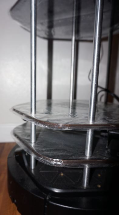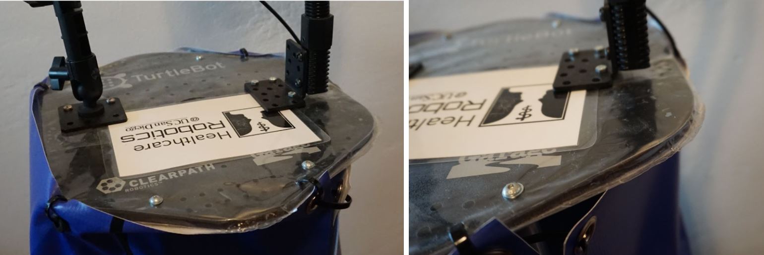 We put laminate over the Turtlebot platforms to cover the small holes in them. The infection control department at our hospital suggested we do this to make the robot easier to clean.