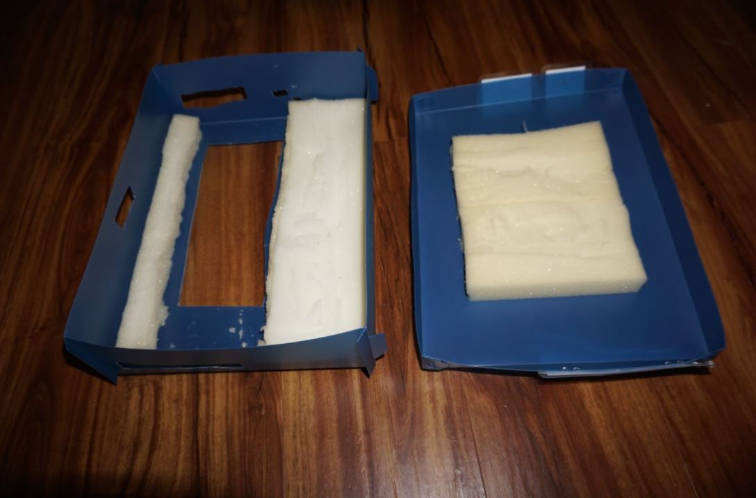 Fig. 7 Plastic resin box with foam for padding and holes cut for laptop ports and vents.