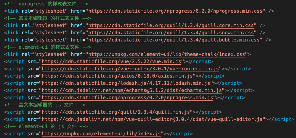 电商后台管理系统整体采用前后端分离的开发模式,其中前端项目是基于 Vue 技术栈的 SPA 项目。