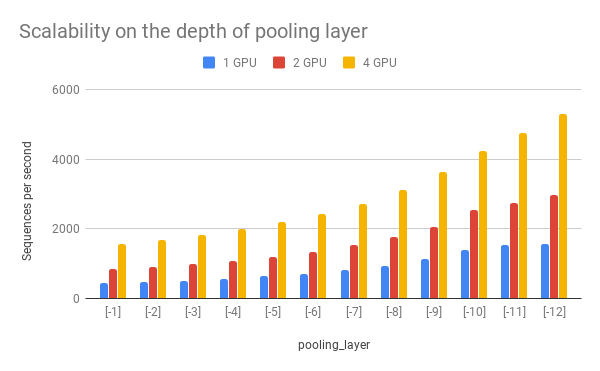 represents the layer closed to the embedding layer. As one can observe below, the depth of the pooling layer affects the speed.