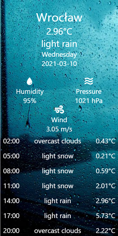 - OpenWeather API - https://openweathermap.org/forecast5