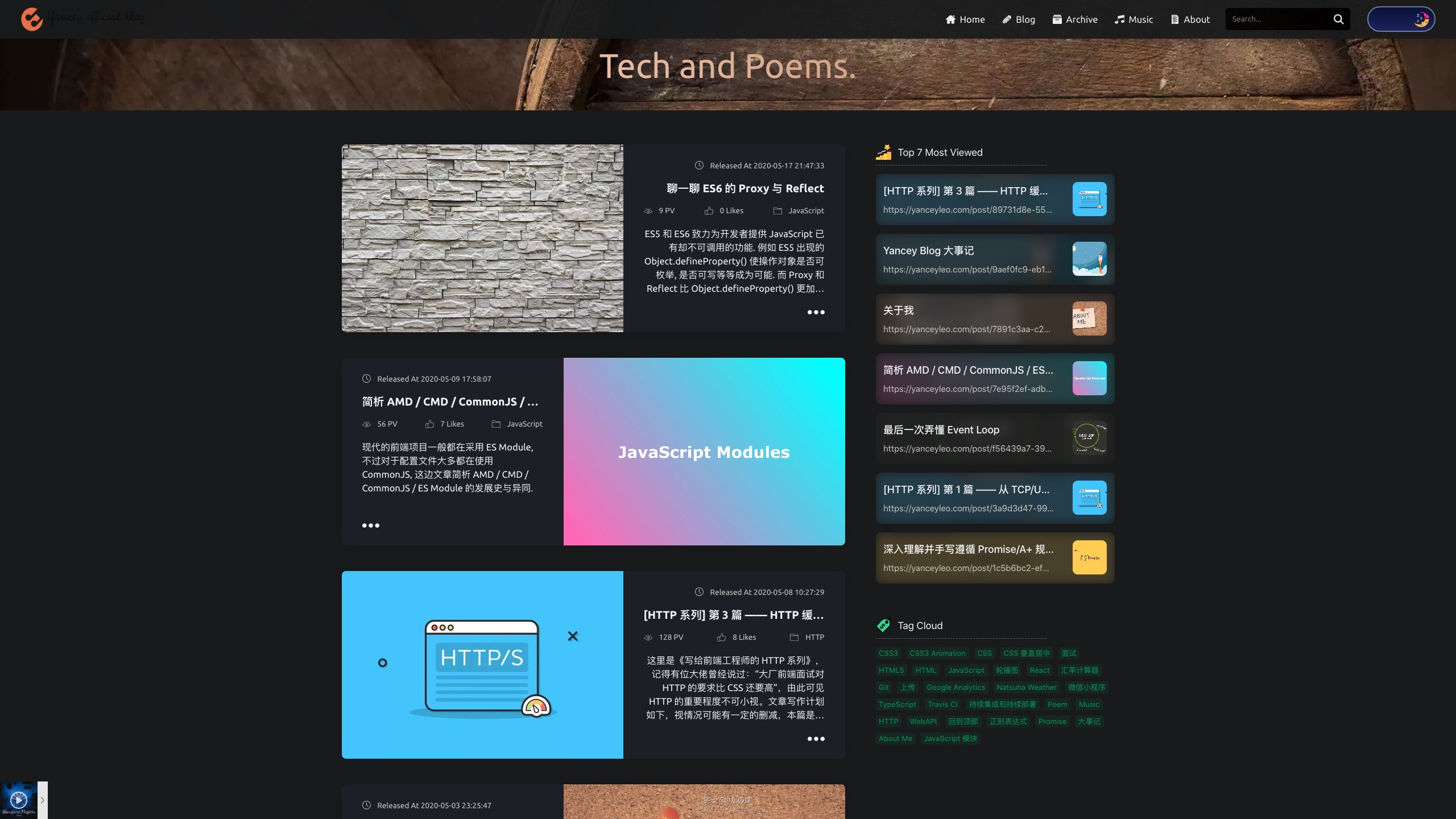 The desktop website for Yancey blog with React, Next.js, styled-components, Apollo Client and GraphQL.