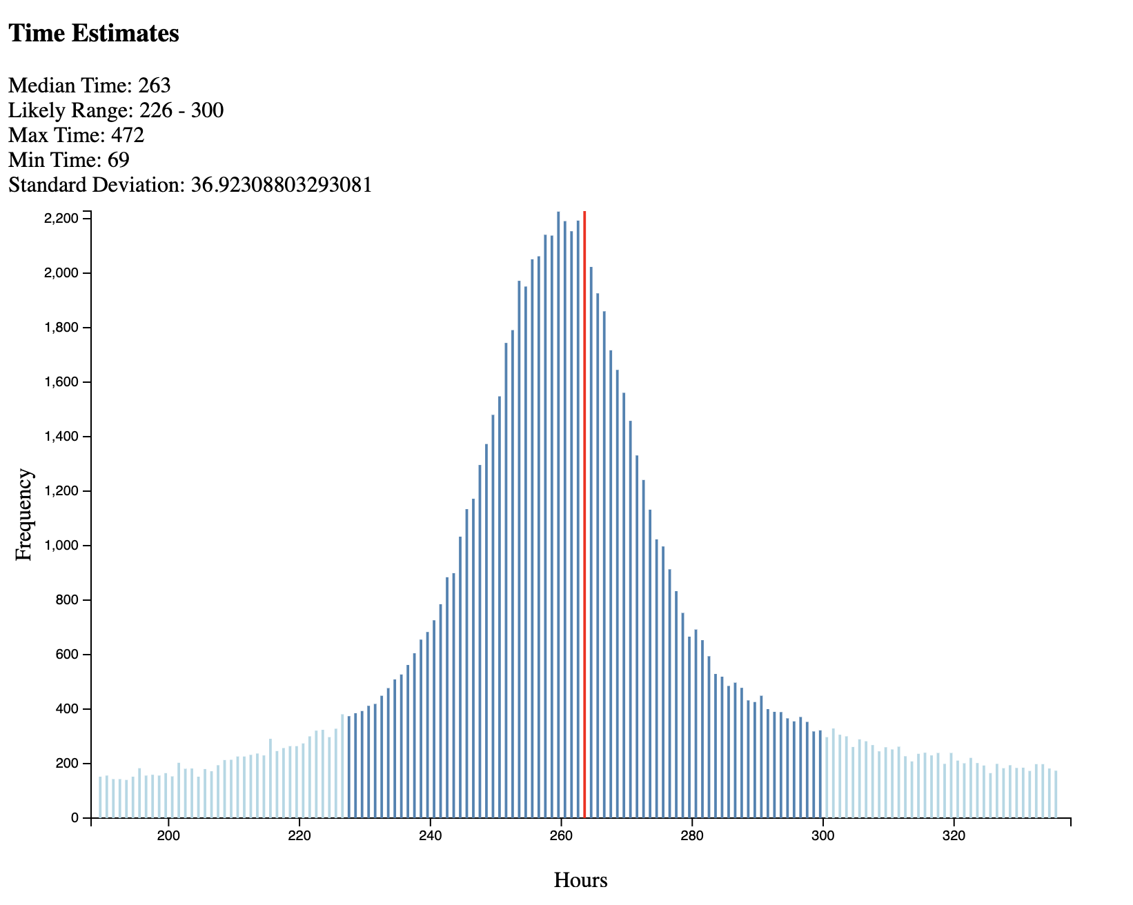 This simple time estimator for projects takes a CSV file and runs a monte carlo simulation to help understand the project's future. It will give you projections of both time required and costs. It is inspired by ideas from Joel Spolsky's piece of Evidence Based Estimates with my own tweaks and adjustments.