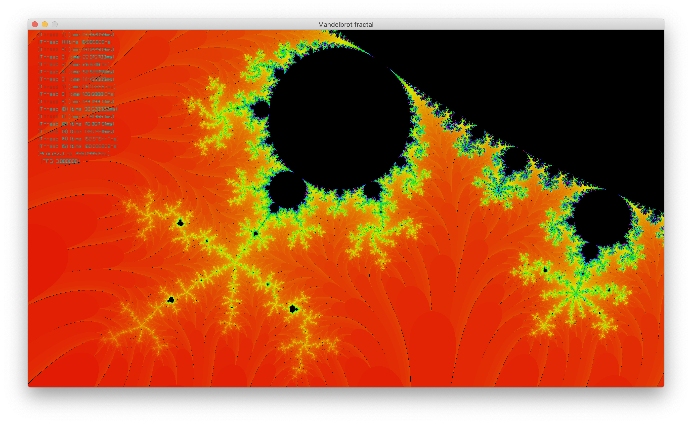 192.16.0.2, 192.16.0.3 and 192.16.0.4 are sample IPs of cluster nodes with the application running in slave mode. The master node communicates continuously with the slave nodes and render all the regions of the Mandelbrot Set in real-time in a system window.