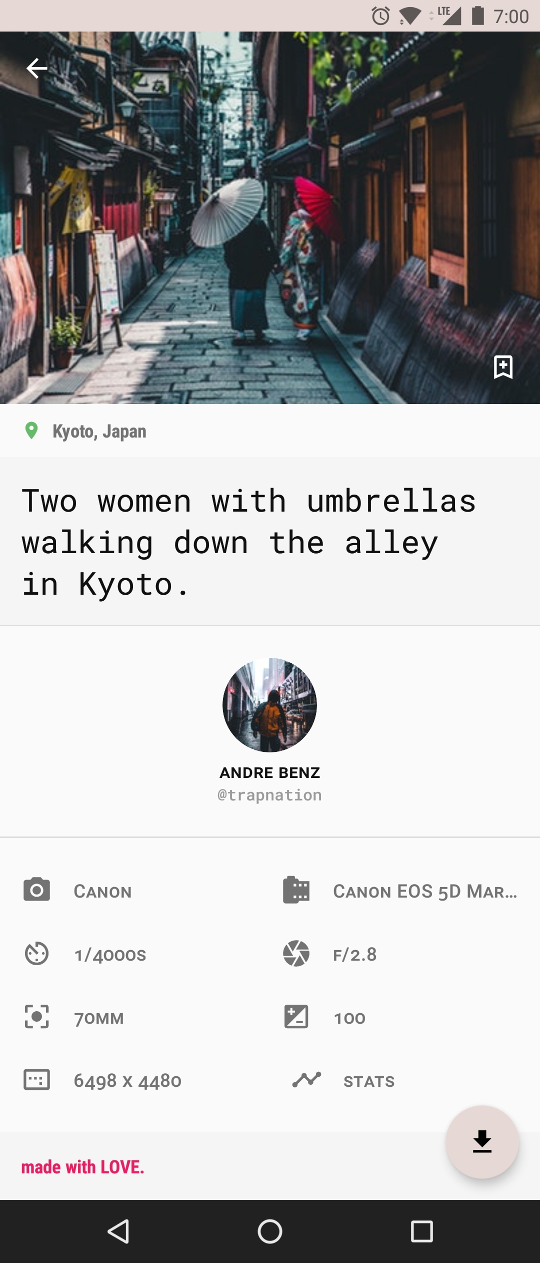 Splash is an app to browse photos from various sources like Unsplash. Due to it's initial stage of development it fetches photos from Unsplash only. In future Splash will fetch photos from various sources. Through Splash you can download photos and bookmark photos, collections and photographers in an offline list. Splash in no way tries to replace the official clients of the respective sources, it merely provides an alternative.
