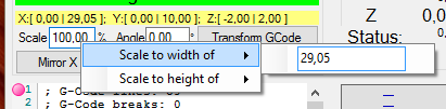 - Transformation of GCodes (scale, rotation, mirror, zero-Offset)