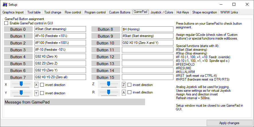 - Supports 4th axis (A, B, C, U, V or W). Status and control (special GRBL version needed)