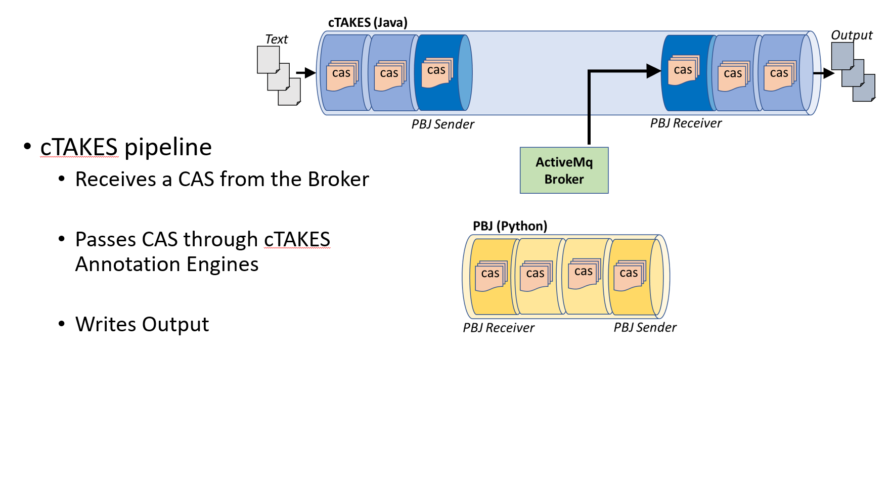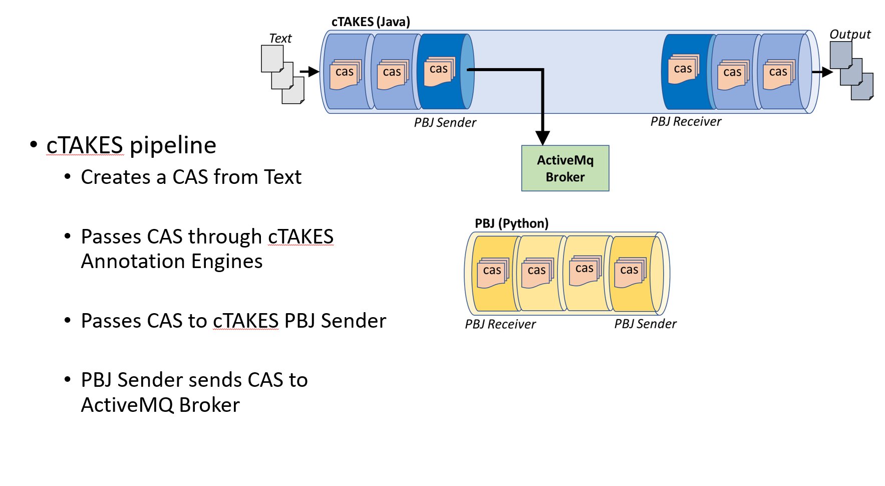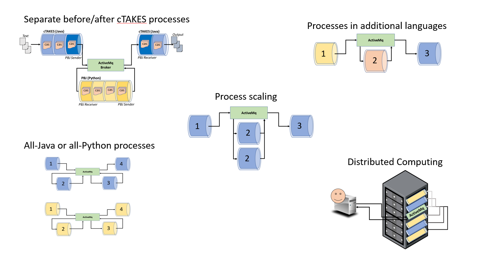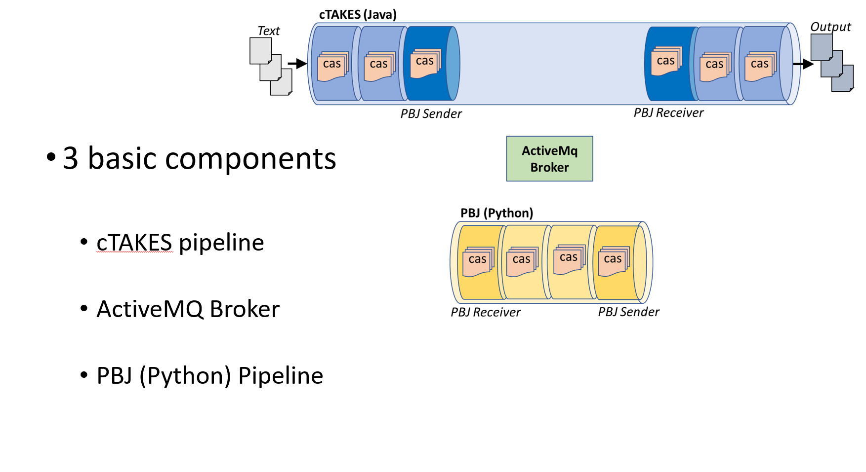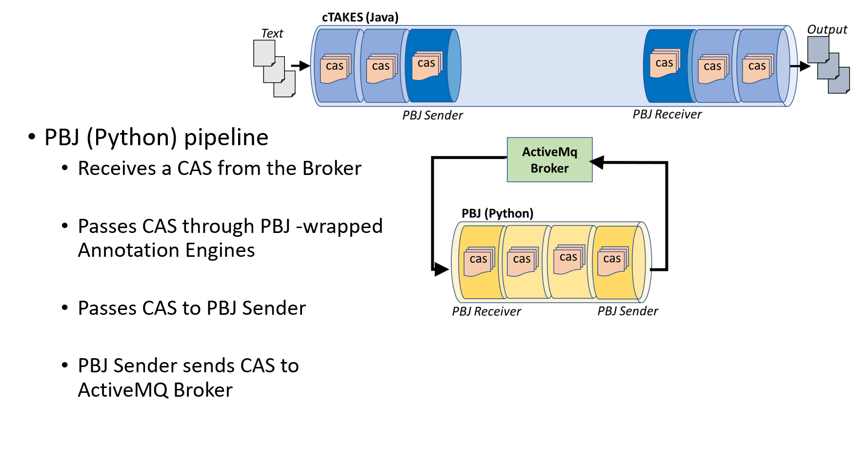 Apache ActiveMQ Message Broker combined with dkpro-cassis became apparent as the ideal solution to our problem, allowing what we hoped for above and more.