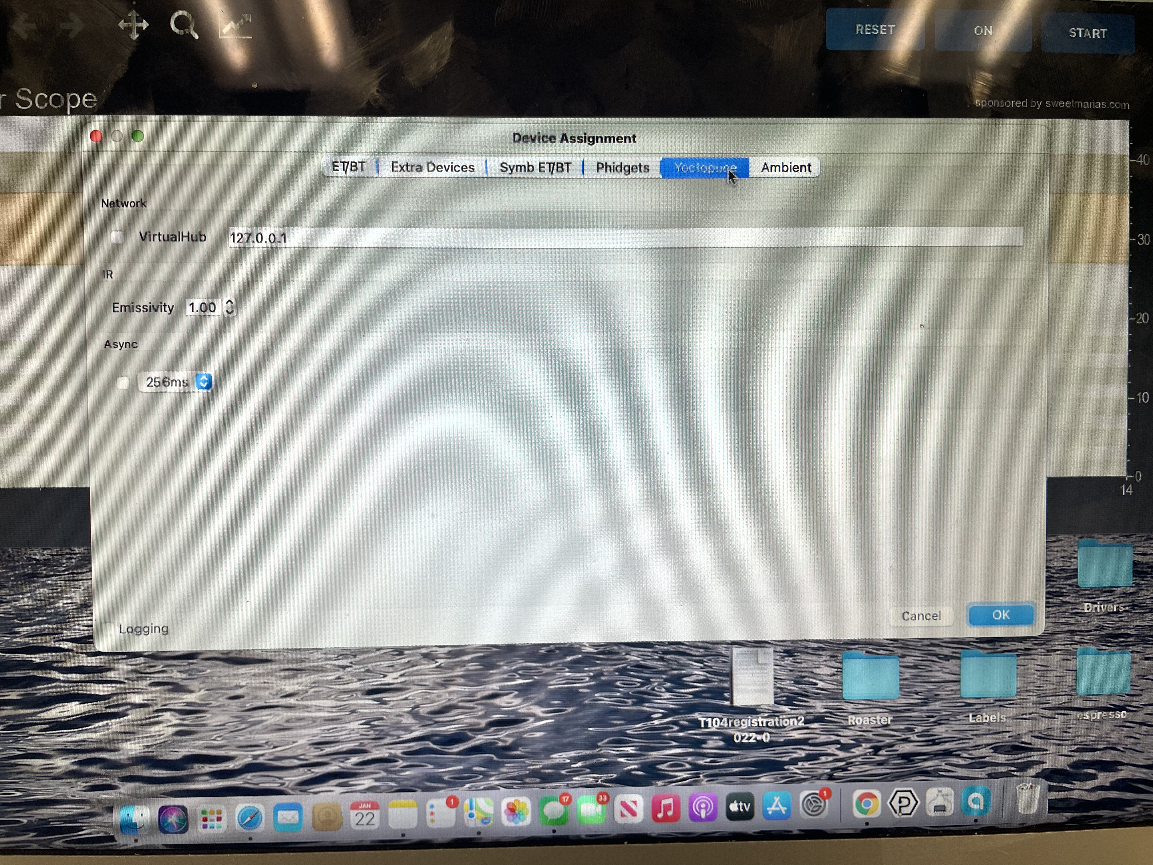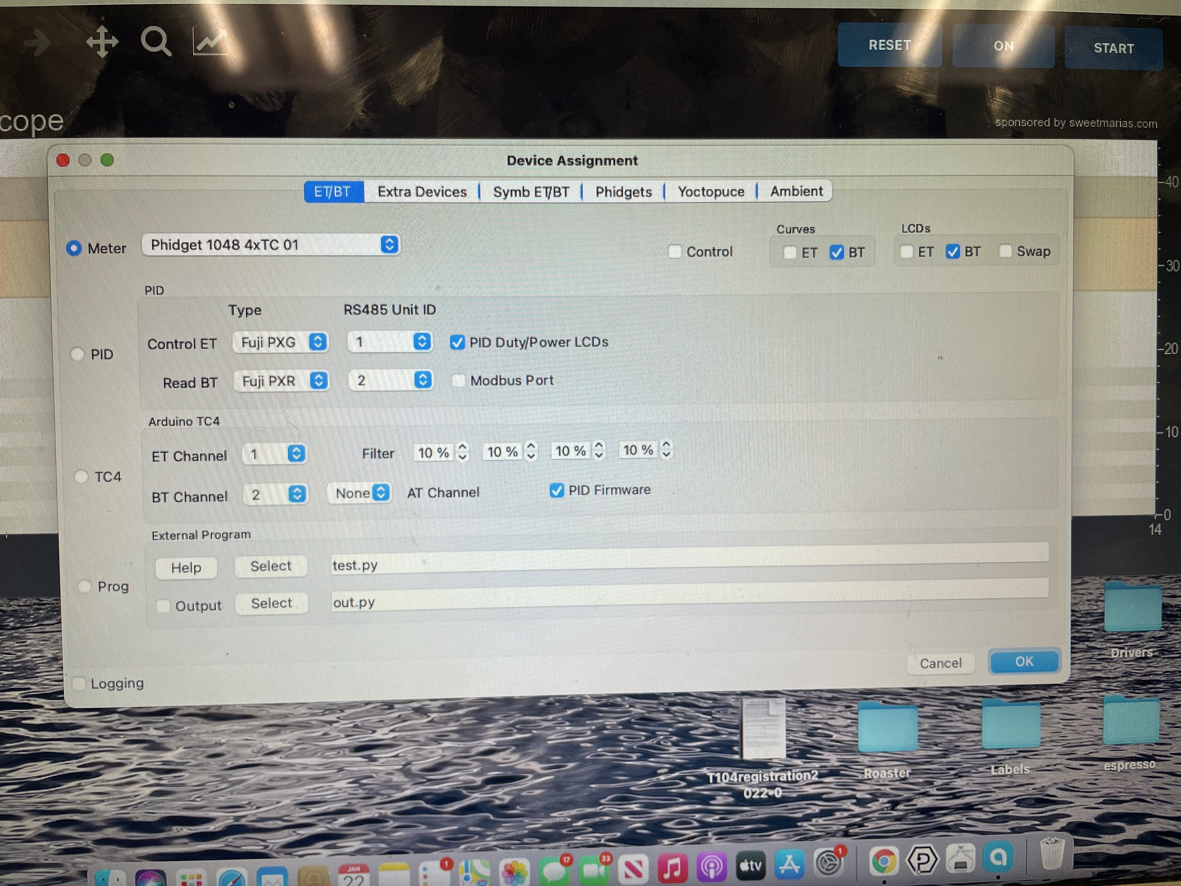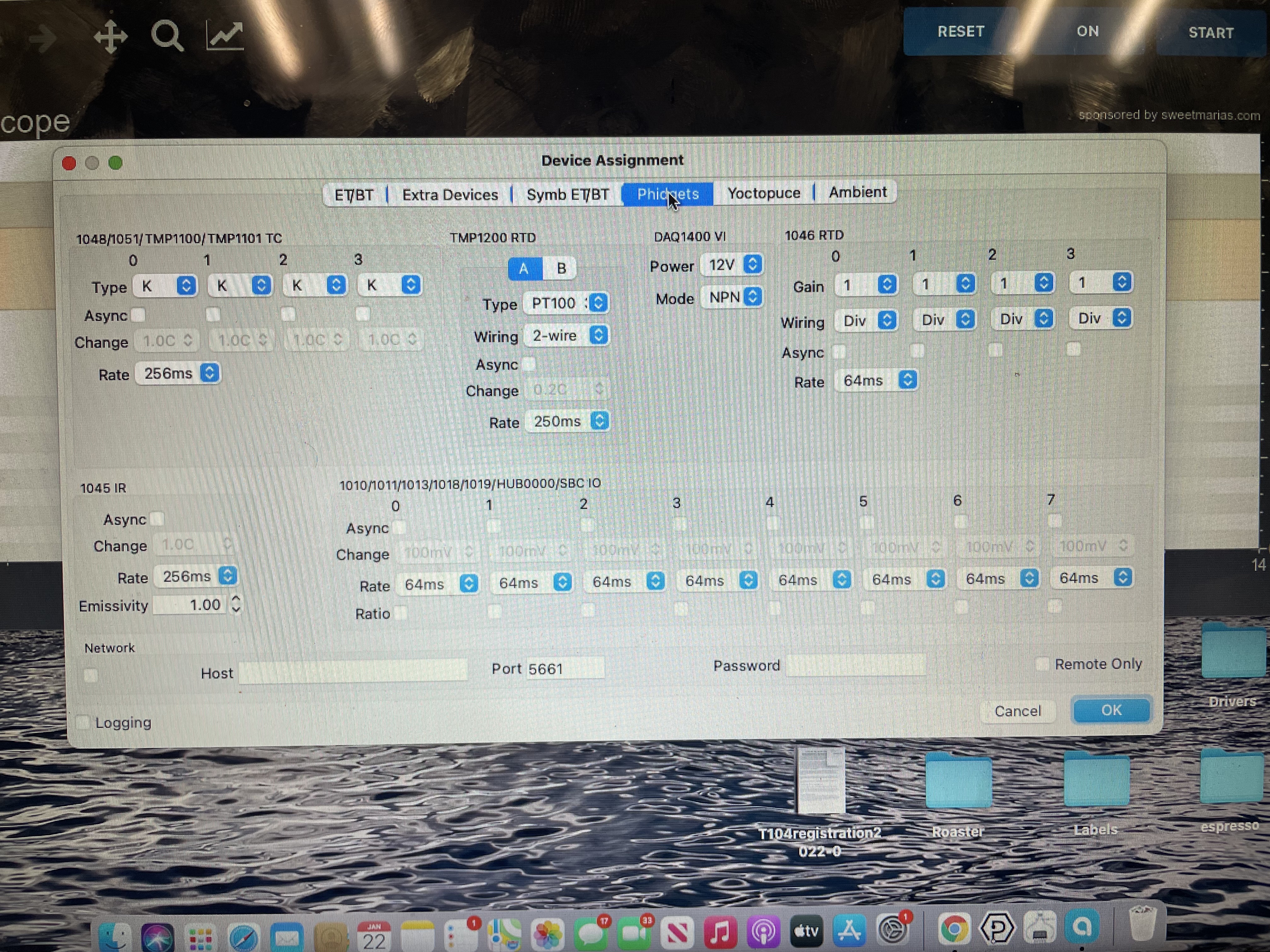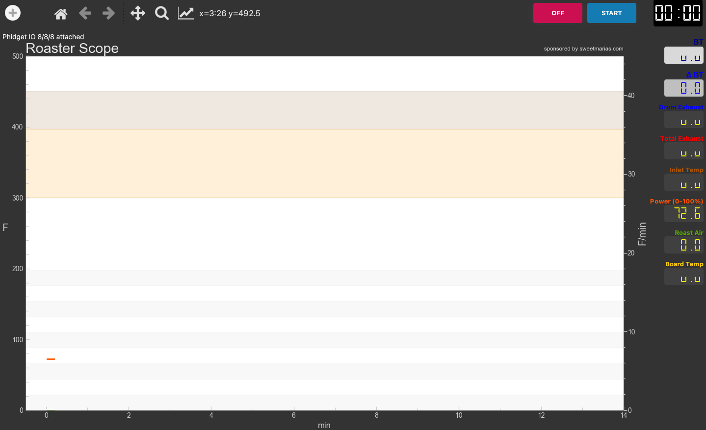 Hi, I’m looking for help, connecting my Diedrich IR2.5 to artisan. I’ve been roasting on a Hucky 500T with center 304 meter for two years with artisan 2.4, and MacBook Air. I just got my Diedrich IR2.5 with phidgets and it will not connect. Only shows 00 or uu for temps. Diedrich told me to just download lates version of artisan and phidgets. Then just pick machine:Diedrich-4 sensor. No good. Please help! |