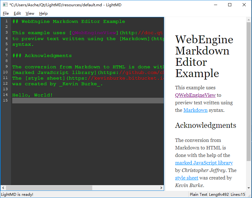LightMD 即一款基于QT实现的markdown编辑器,当然也可以作为代码编辑器,由于时间与个人能力等原因,目前实现的功能非常有限!