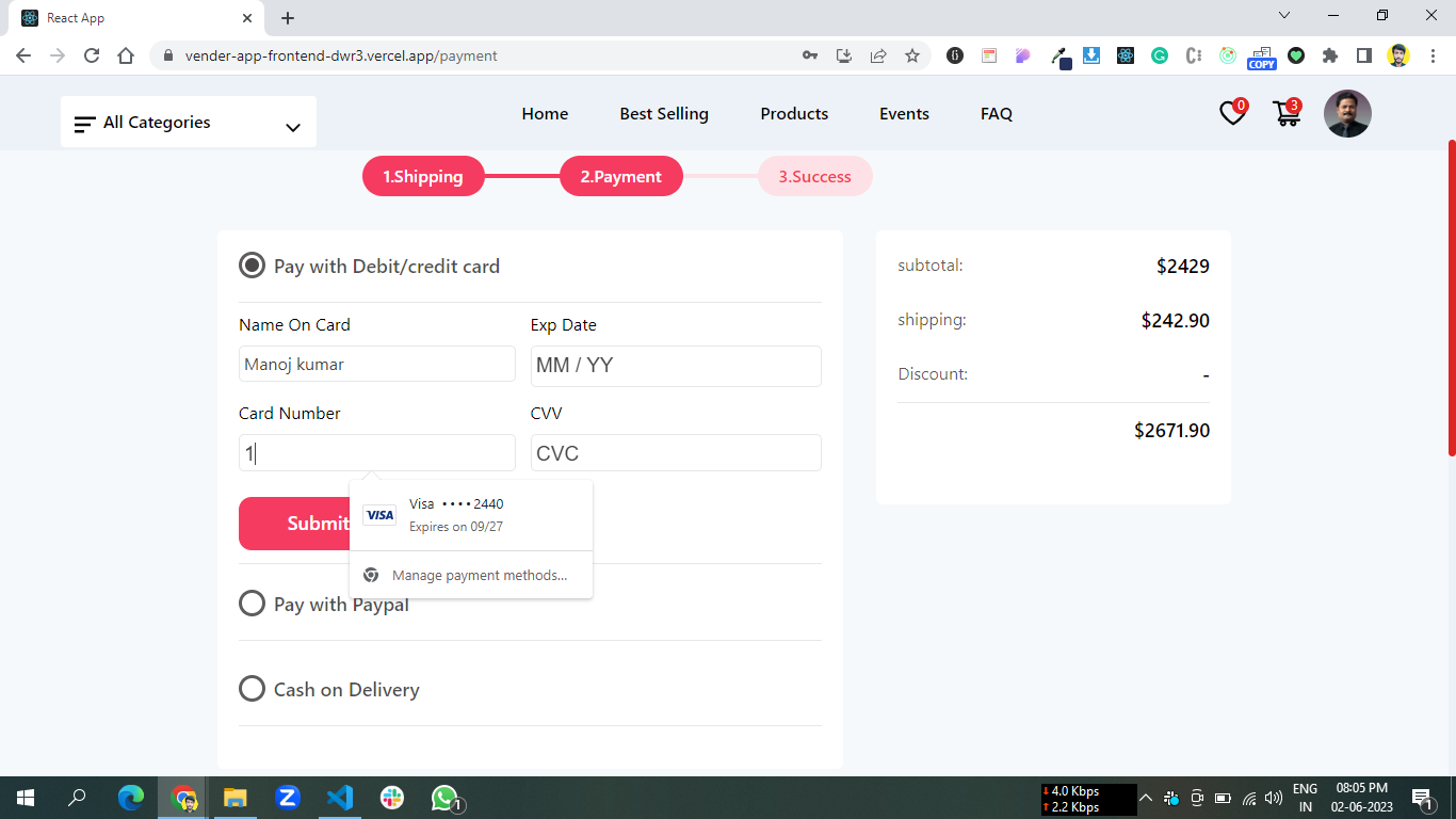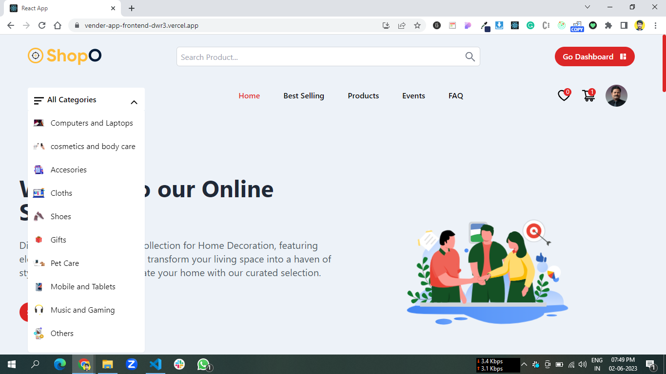 This website provides a seamless shopping experience for customers. Users can browse through various products, add items to their cart, and proceed to checkout. Integration with a payment gateway ensures secure and convenient online transactions. Additionally, a chat feature is implemented to enable real-time communication between users and vendors for queries or assistance.