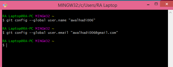 Setelah itu kembali ke Git Bash Command dengan mengetik perintah :