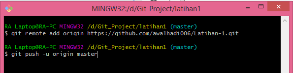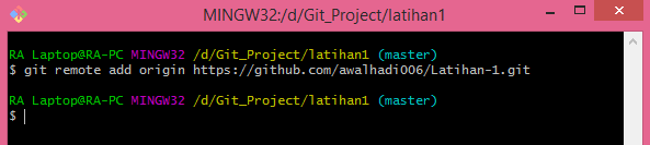 Perintah ini digunakan agar repository lokal kita terhubung dengan repository server yang telah kita buat.