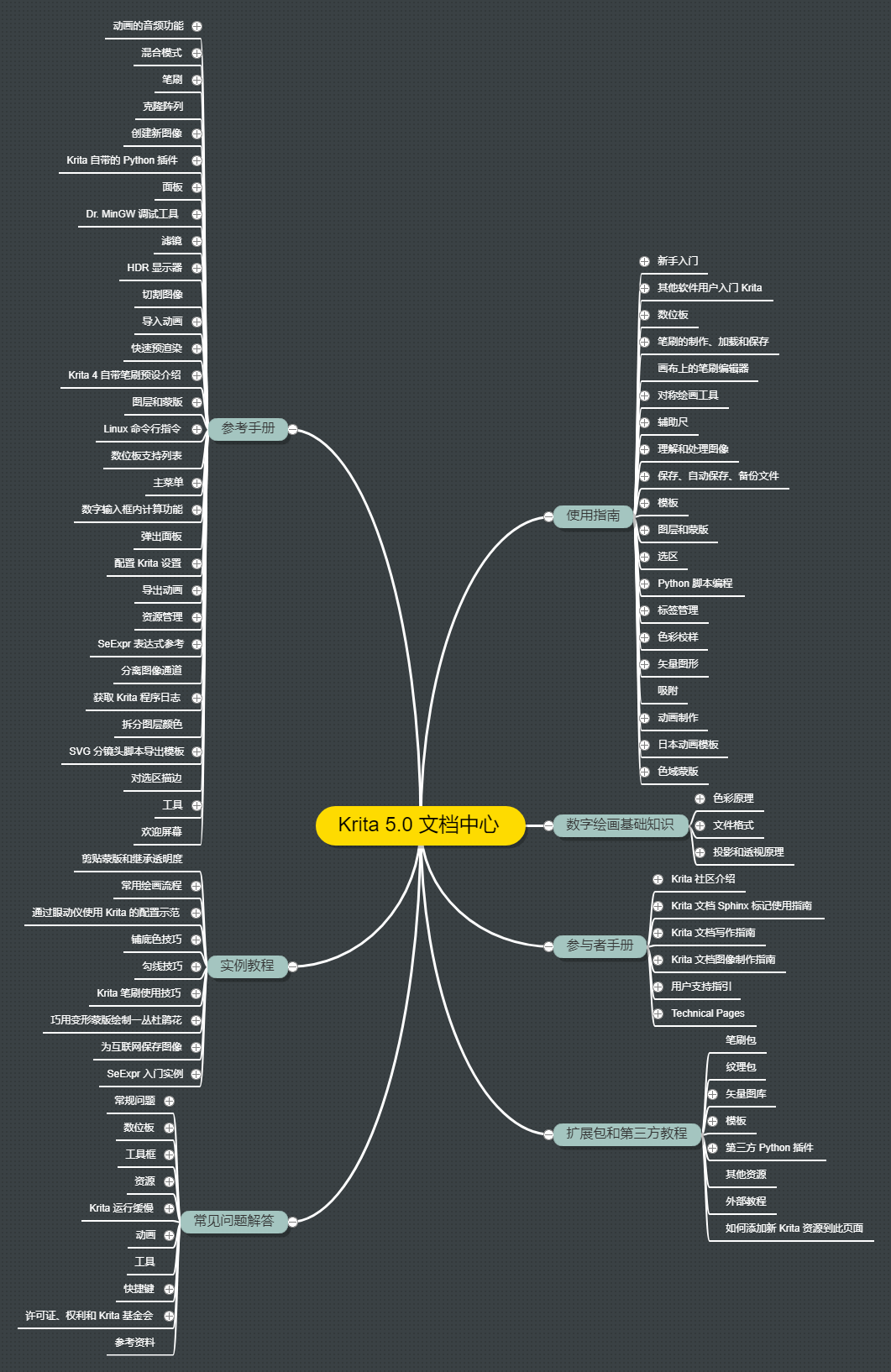 Krita 并不像 Adobe 系软件,自带有软件内引导教程。想要了解 Krita 的功能,有个非常好的选择——官方的手册。