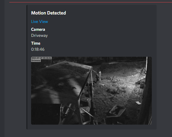 I've setup an automation so that whenever a camera detects motion and nobody is home it sends me a discord message.