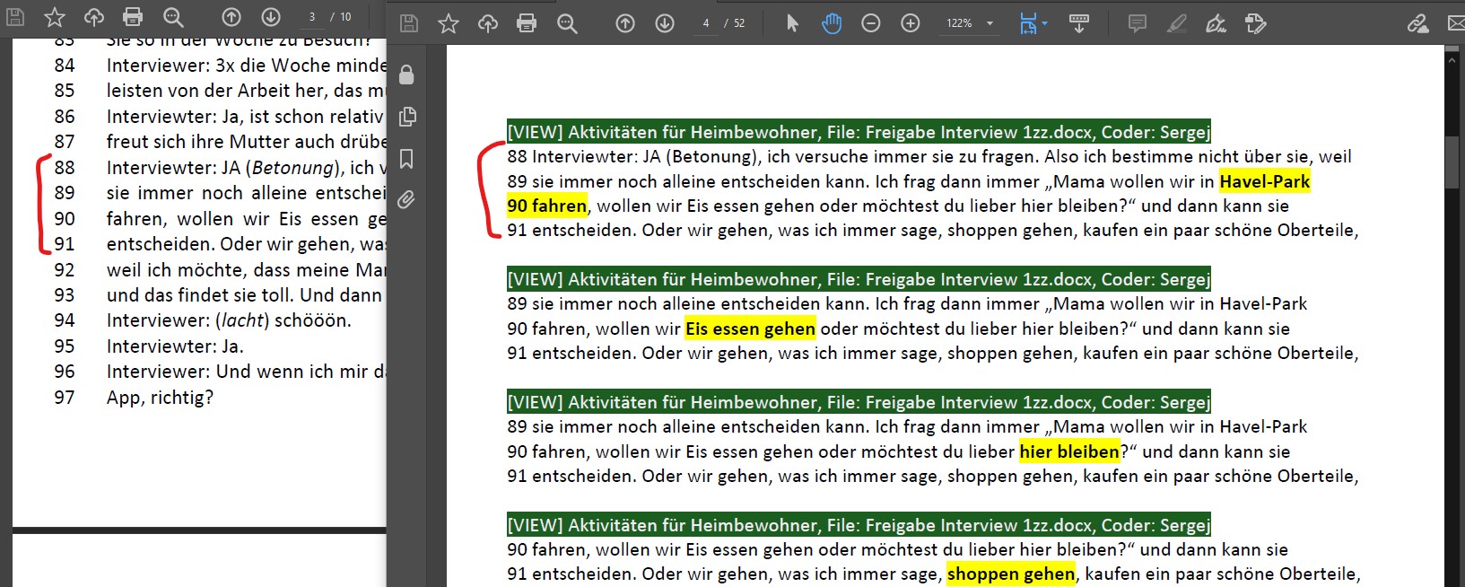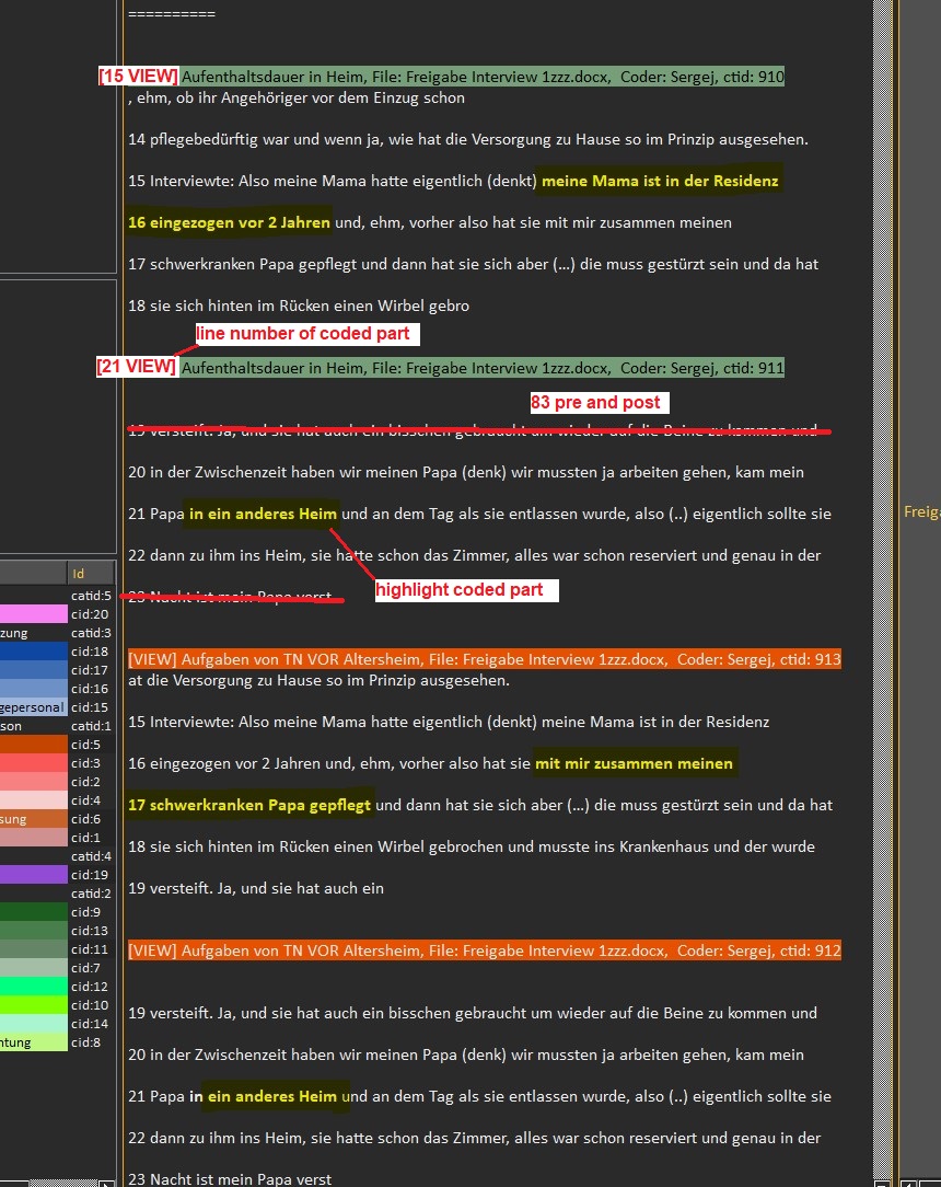 As a third suggestion, to round everything up, would be an option to add line numbers to the text data and apply them also to the report. This way, with large data, referencing to the coded parts is easier.