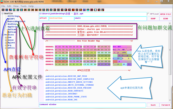 Detailed analysis is a comprehensive analysis for the malicious software execution logic and implementation process, the following brief introduction to the basic usage of GDA.
