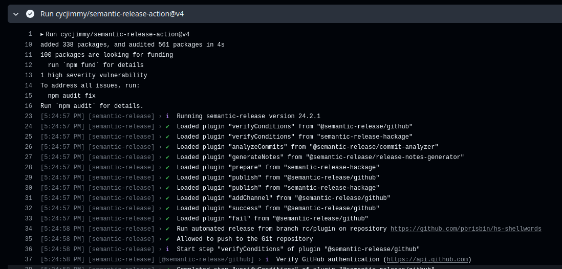 The logging from semantic-release is not colorful on GitHub Actions, presumably because the terminal detection doesn't account for it.