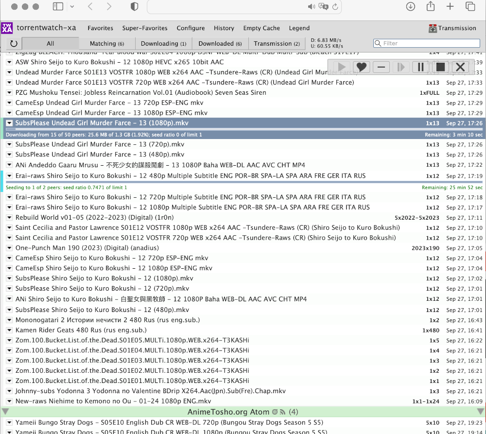 As a fork of TorrentWatch-X, torrentwatch-xa handles Western live-action show titles containing commonly-used season x episode or date-based numbering styles. It is specially designed to also handle the widely-varying numbering styles used by anime, manga, and light novel fansubbing crews and also features all the bugfixes and code cleanup that TorrentWatch-X so badly needed.