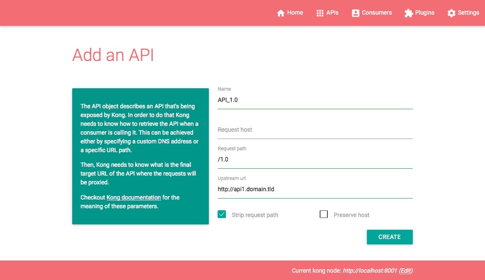 vagrant upWhen browsing Kong-Dashboard, you will be asked to provide the URL of your Kong node.