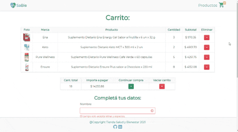 El presente proyecto ha sido realizado durante el curso de React JS de Coder House (Camada 16975). Tienda SaBie es un ecommerce que se dedica a la venta de suplementos deportivos, nutricionales y de control de peso.
