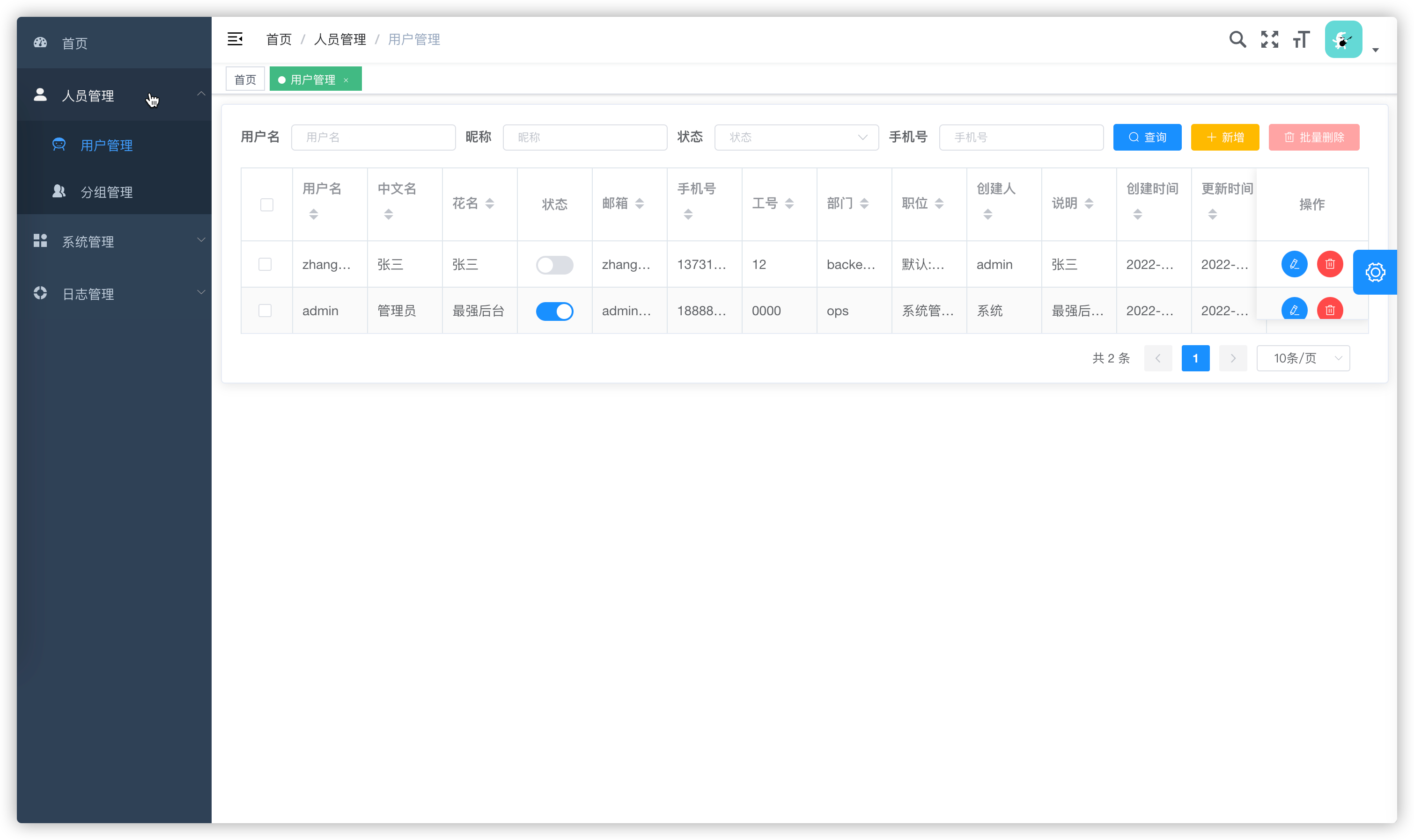 数据库支持 MySQL 与 sqlite3(无 CGO 依赖),如果你的系统仅为运维内部一个小系统,则推荐你使用 sqlite3。数据表会自动映射并创建。