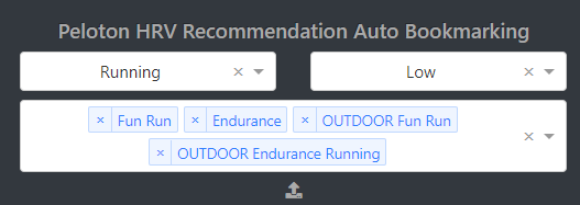 If using Oura, HRV recommendations can be used to auto-bookmark new classes on your peloton device daily. Class types to be bookmarked can be configured on the settings page (i.e. on days where HRV recommendation is "Low" effort, auto bookmark some new "Running" workouts of the class type "Fun Run", "Endurance Run", "Outdoor Fun Run", and "Outdoor Endurance Run")