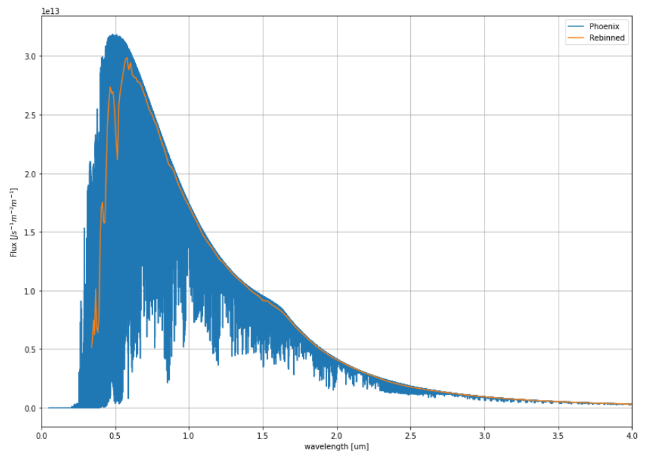 tools/download_and_prepare_phoenix_spectrum.py: functions to integrate spectrum to wavelength grids. Call as script to read generate spectrum.
