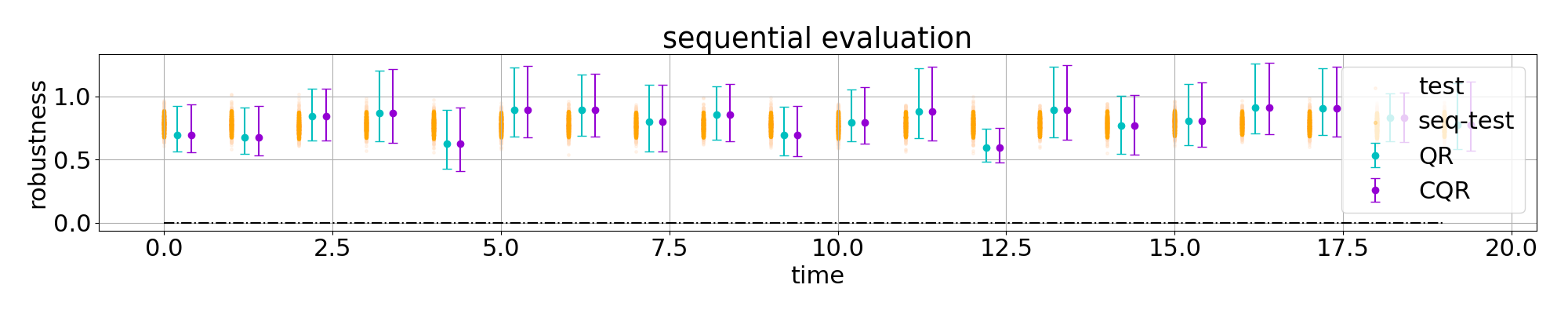 Datasets/This folder contains the pre-generated synthetic datasets.Models/This folder contains the pre-trained models.MODEL_PREFIX+MODEL_DIM/This folder contains a subfolder for each tested configuration:ID_CQR_#CONFIG_ID_Dropout0.1_multiout_opt=_20hidden_500epochs_3quantiles_3layers_alpha0.1_lr0.0005The stringMODEL_PREFIX+MODEL_DIM` uniquely identifies the case study:MODEL_PREFIX: model prefixes are ‘AAD’ for Automated Anaesthesia Delivery, ‘AADF’ for AAD with the eventually operator, ‘EHT’ for Heated Tank with Exponential Failures, ‘MRH’ for Multi Room Heating, ‘GRN’ for Gene Regulatory Network.MODEL_DIM: model dimension is set to -1 for ‘AAD’, ‘AADF’ and ‘EHT’. For ‘MRH’ it can be set to 2, 4, 8. For ‘GRN’ it can be set to 2, 4, 6.CONFIG_ID: modular case studies (MRH and GRN) have as many properties as the number of properties. The identifier denotes the considered property. For combined properties, it is a concatenation of the identifiers of the two properties.