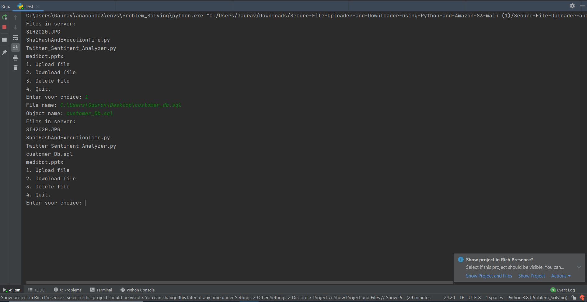 Amazon S3 is a service offered by AWS which has a simple web services interface that you can use to store and retrieve any amount of data, at any time, from anywhere on the web. It gives any developer access to the same highly scalable, reliable, fast, inexpensive data storage infrastructure that Amazon uses to run its own global network of web sites. The objective is to create secure file controller to upload, download and delete files to and from Amazon S3 Bucket using Python scripts to enable automation and flexibility.