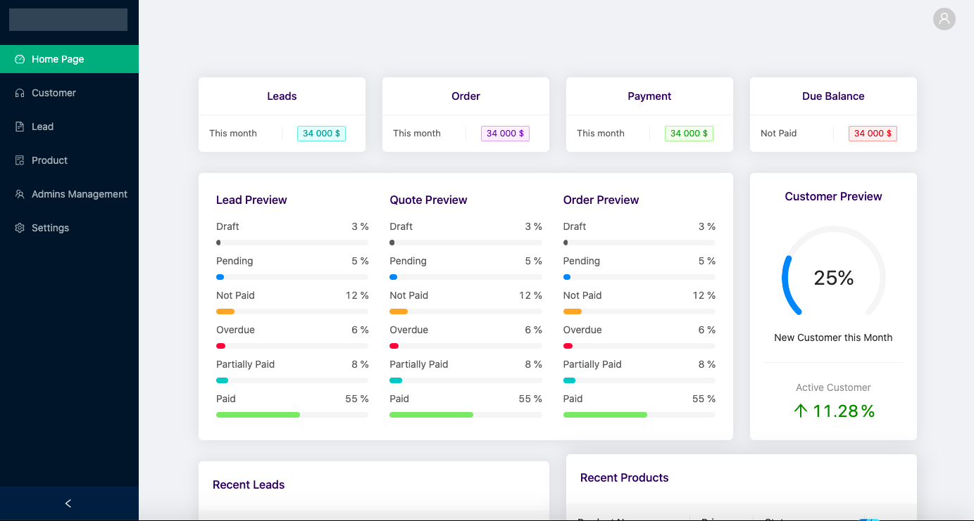 Starter Crm App based on mern stack (Express.js / MongoDb / React / Redux / AntD) with generic crud and auth , admin management .