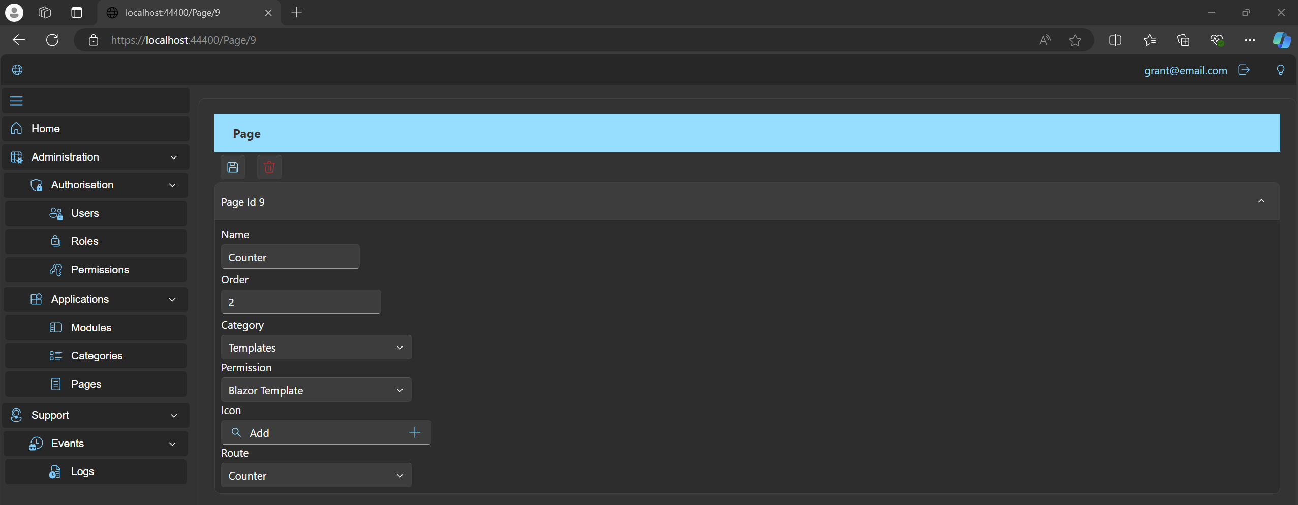 Create the user will@email.comand assign theBlazor Template Rolerole.