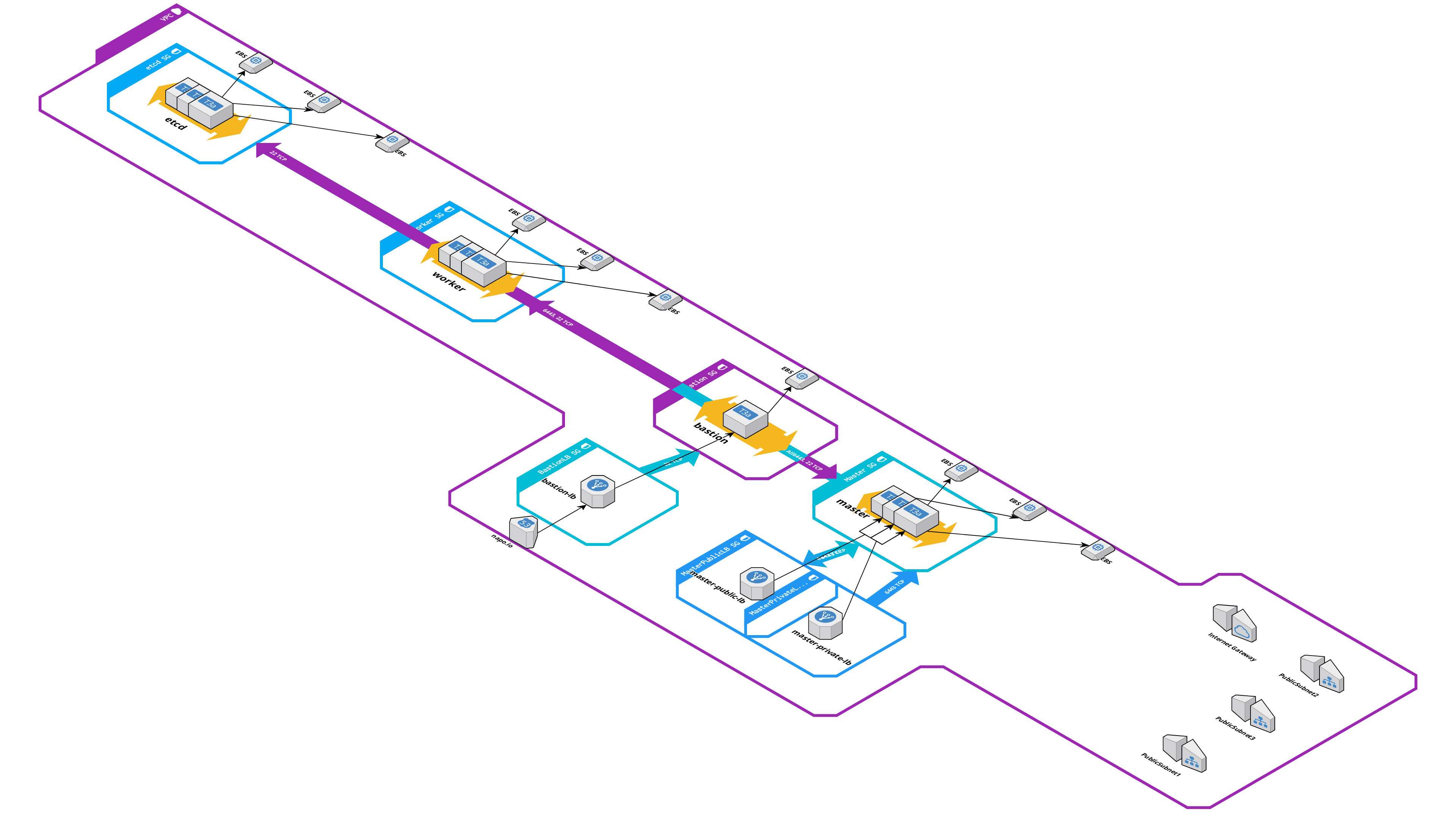 - 1x Private LoadBalancer for Master Nodes (fronting kube-apiservers)