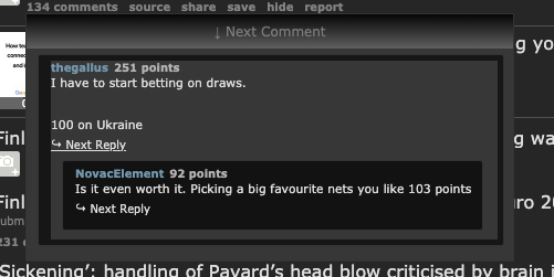 with RES dark mode. After hovering on a comment, clicking "next reply" seems to trigger a swap of background color. Plus, the background color of each comment seems to be applied on the wrong element.