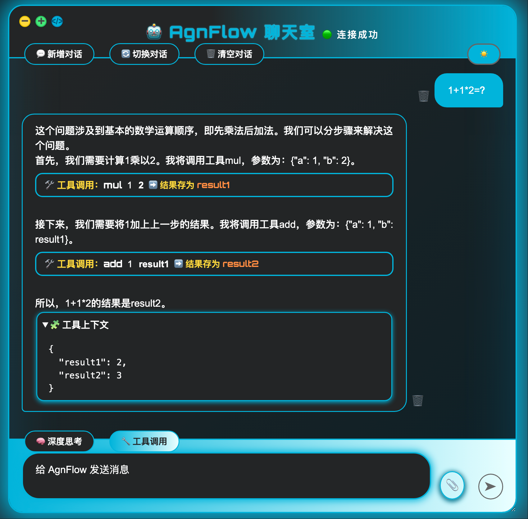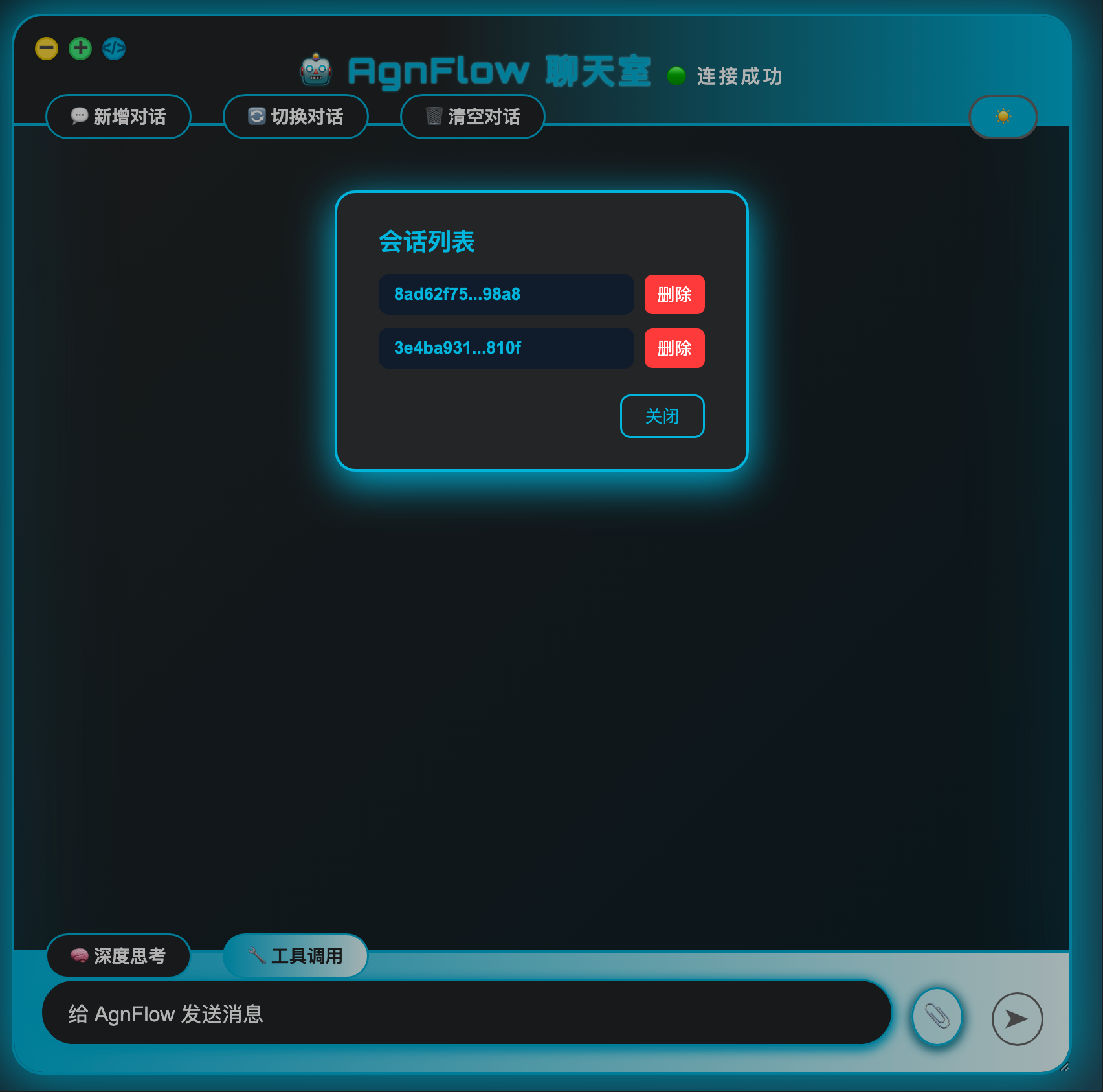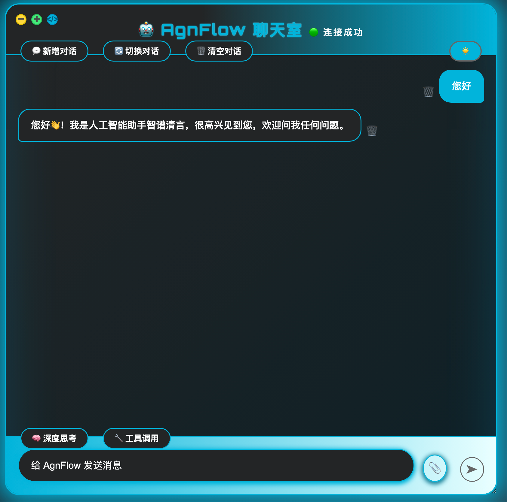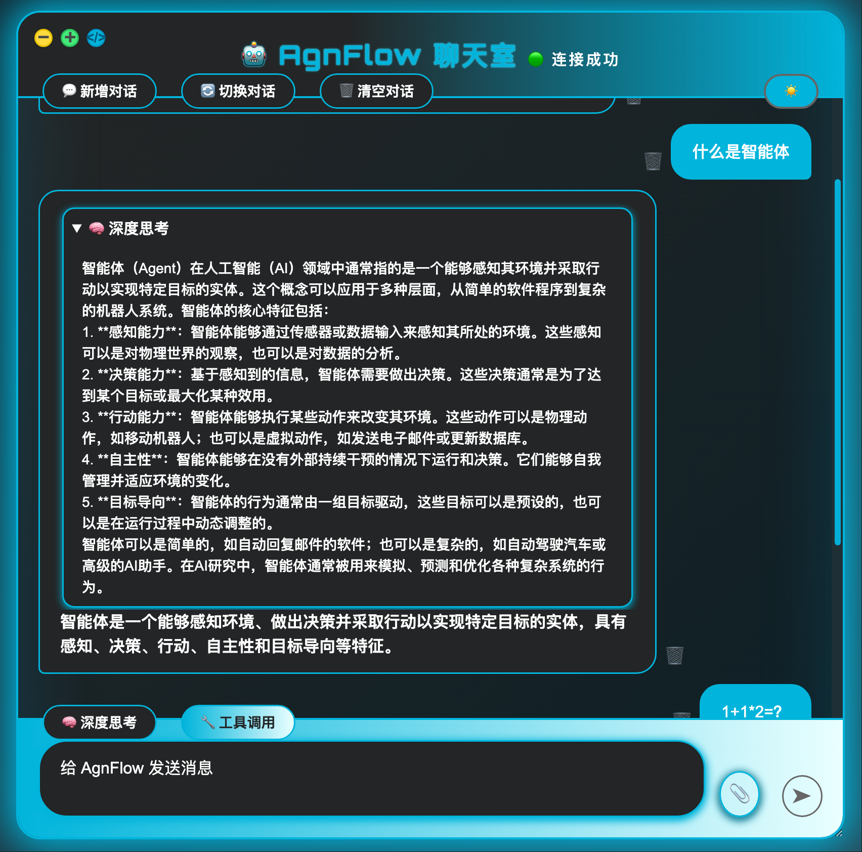 AgnChat 是一个现代化的AI聊天机器人,基于 React + TypeScript 实现,具备多会话管理、WebSocket 实时通信、图片上传与智能功能切换等特性。