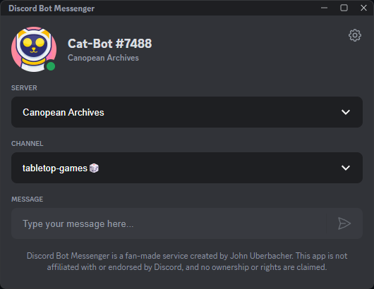 Type your message in the designated input field and hit the send button to dispatch the message from the bot to the chosen channel.