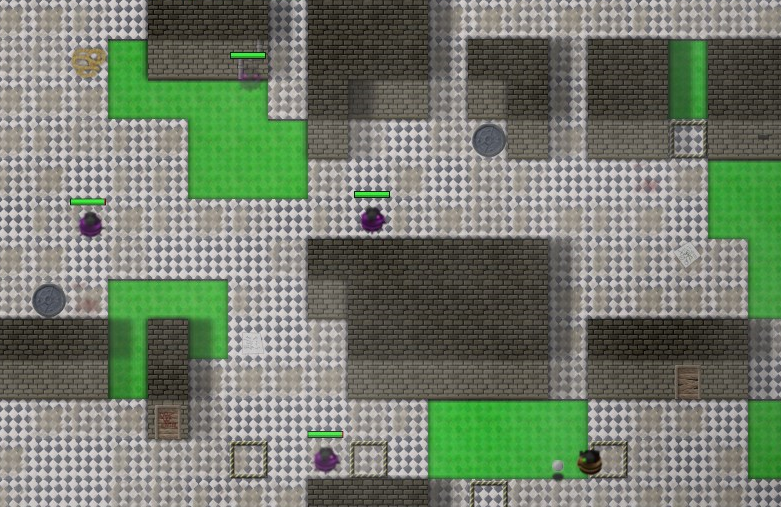Enemies receive damage by either bullet damage or by touching toxic water. Both actions also slow them.